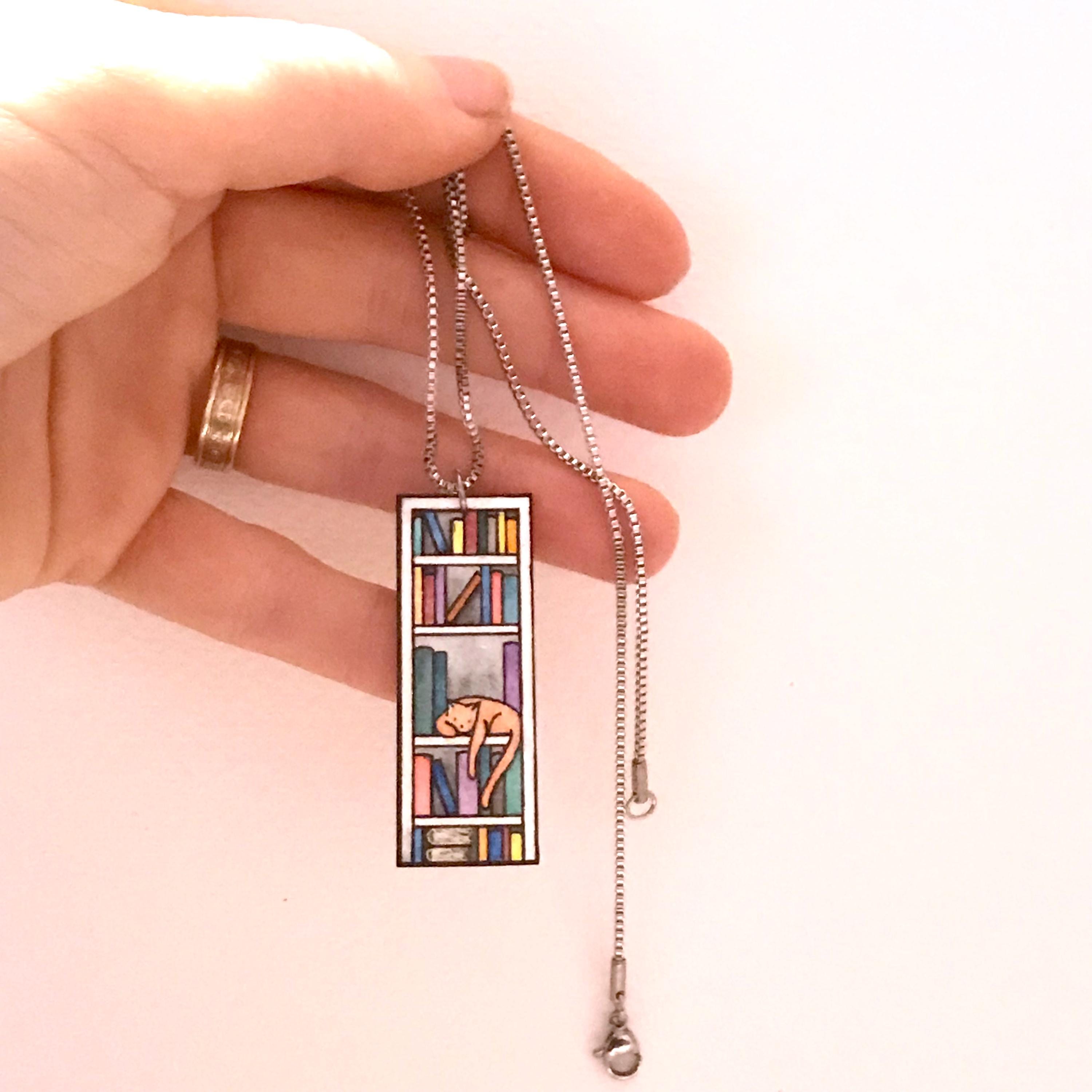Cat on Bookshelf Necklace
