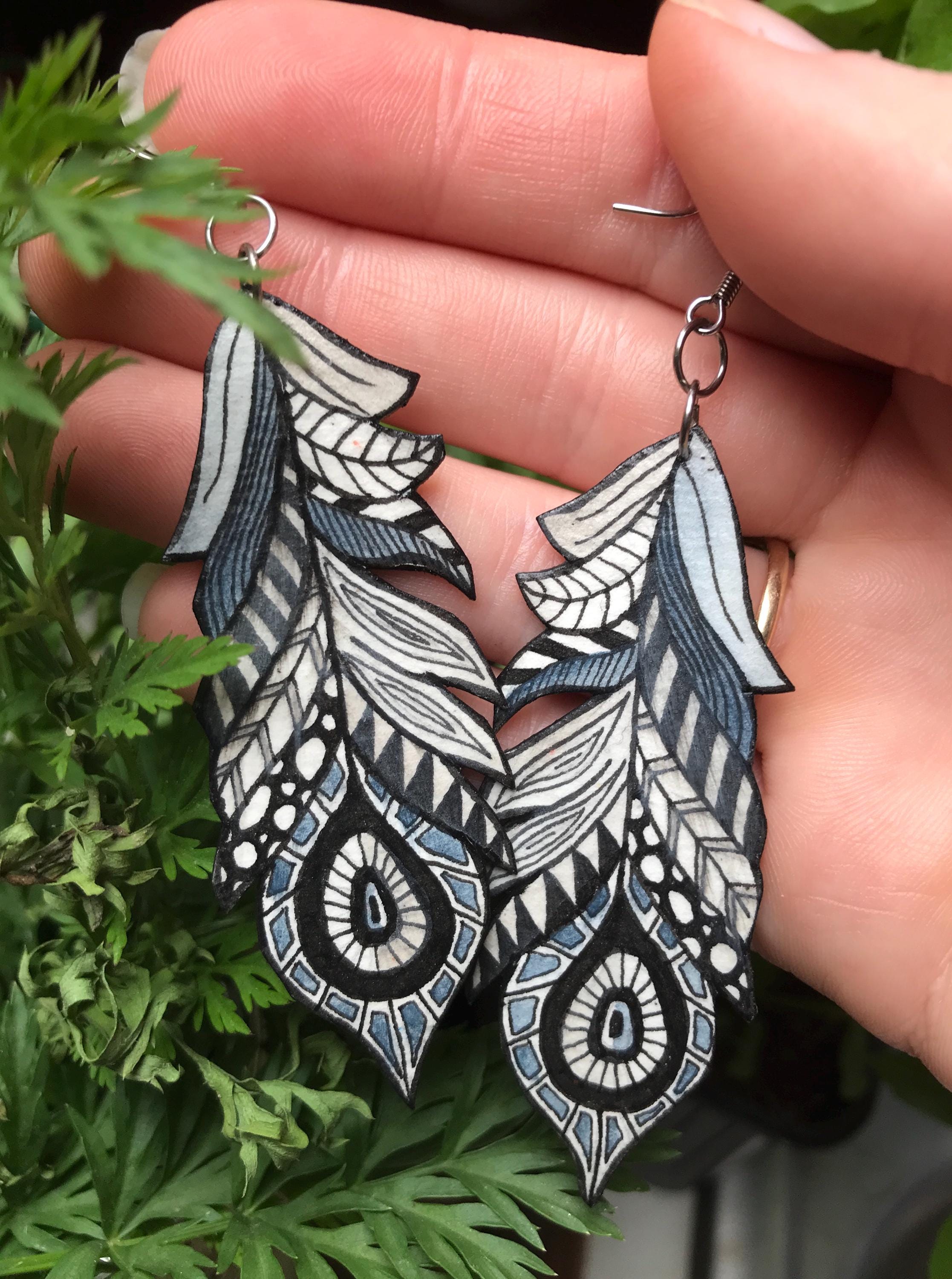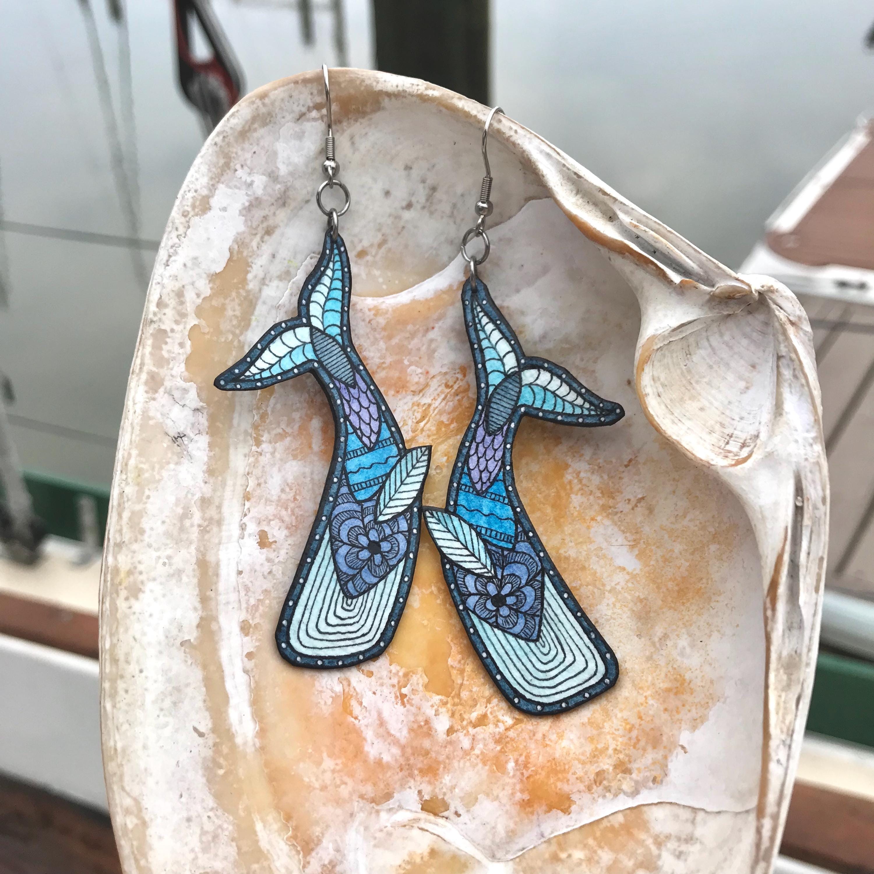 Zentangle Blue Whale Earrings