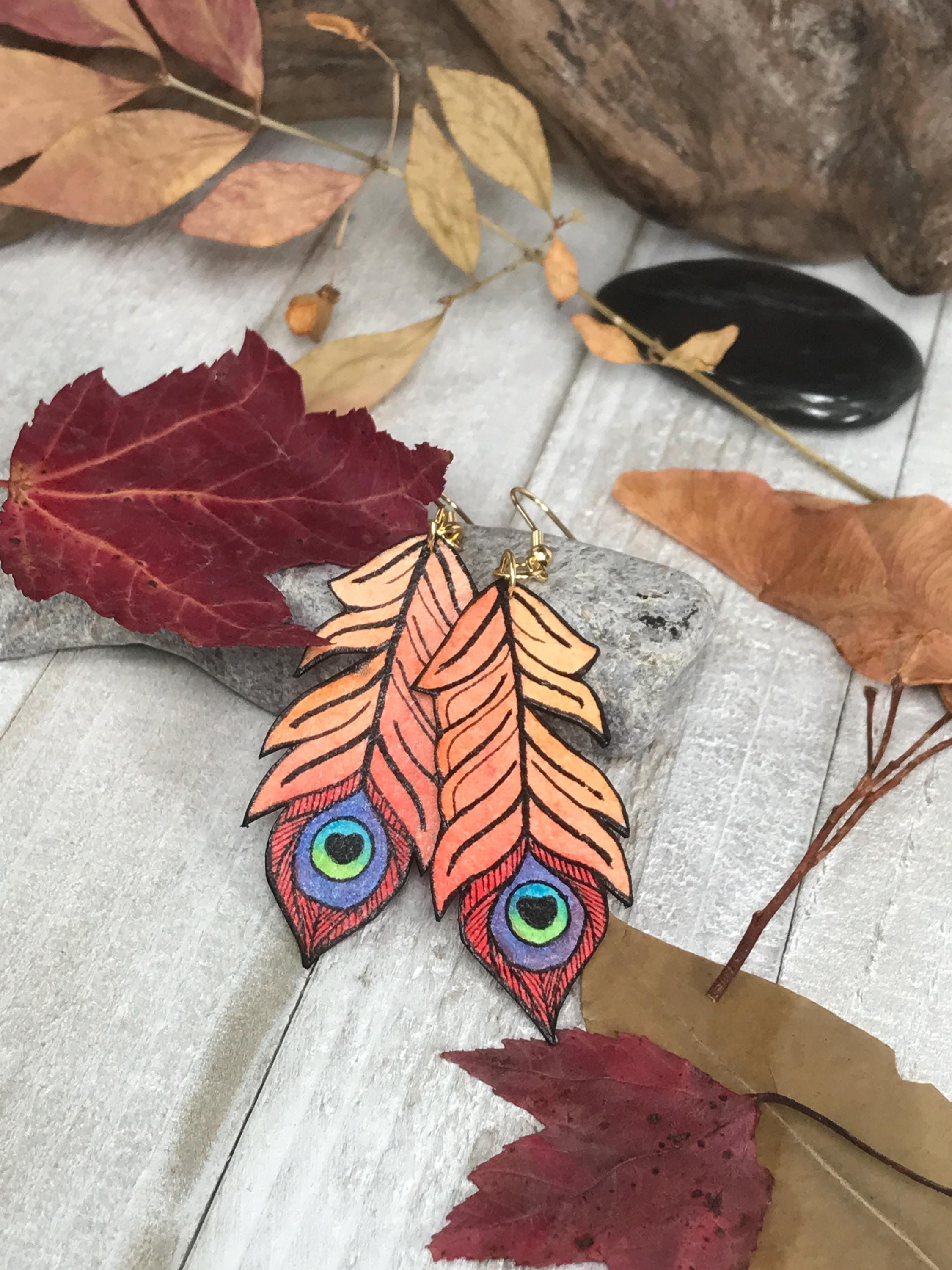 Autumn Peacock Feather Earrings
