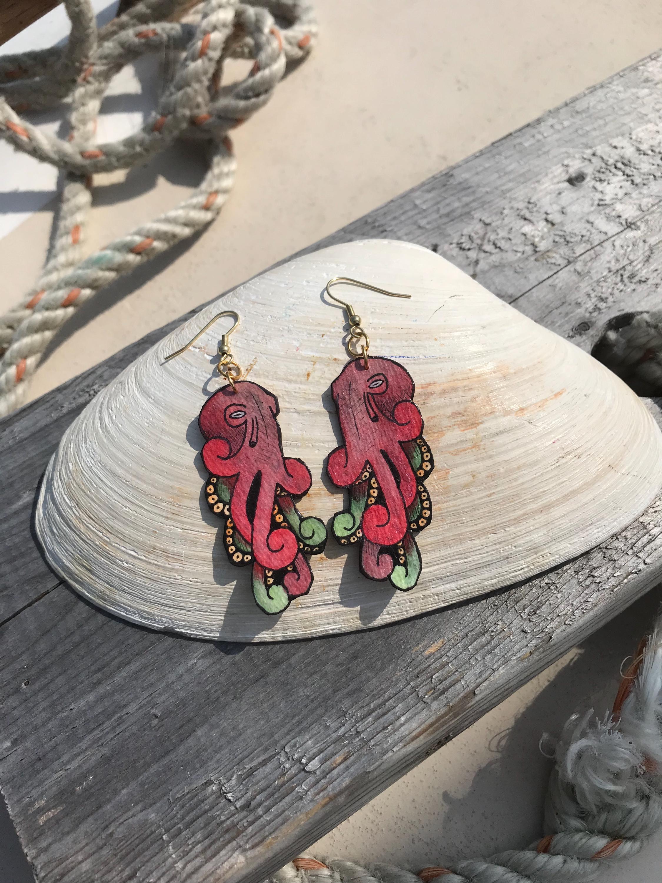 Red & Green Octopus Earrings