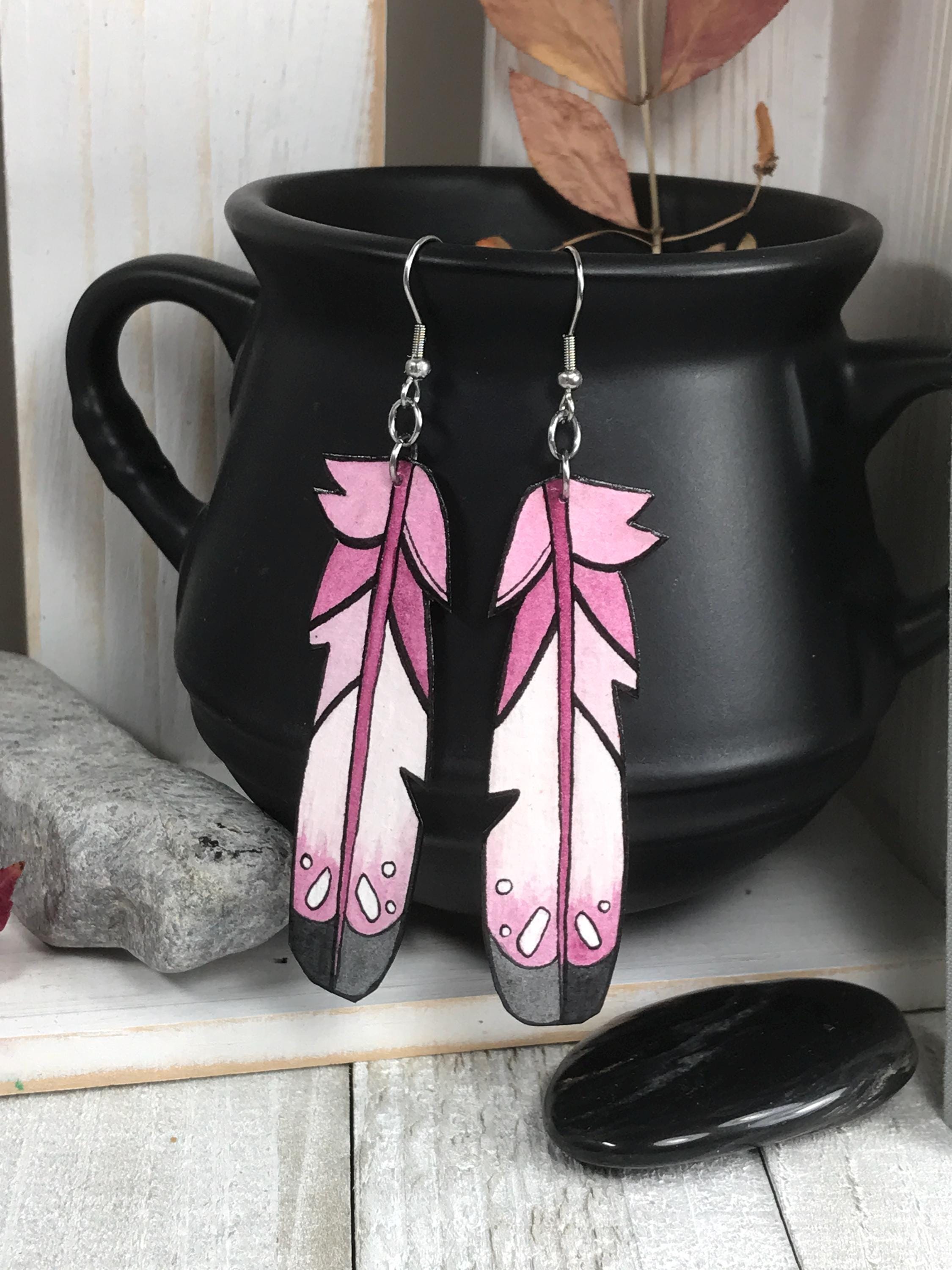 Pink Eagle Feather Earrings