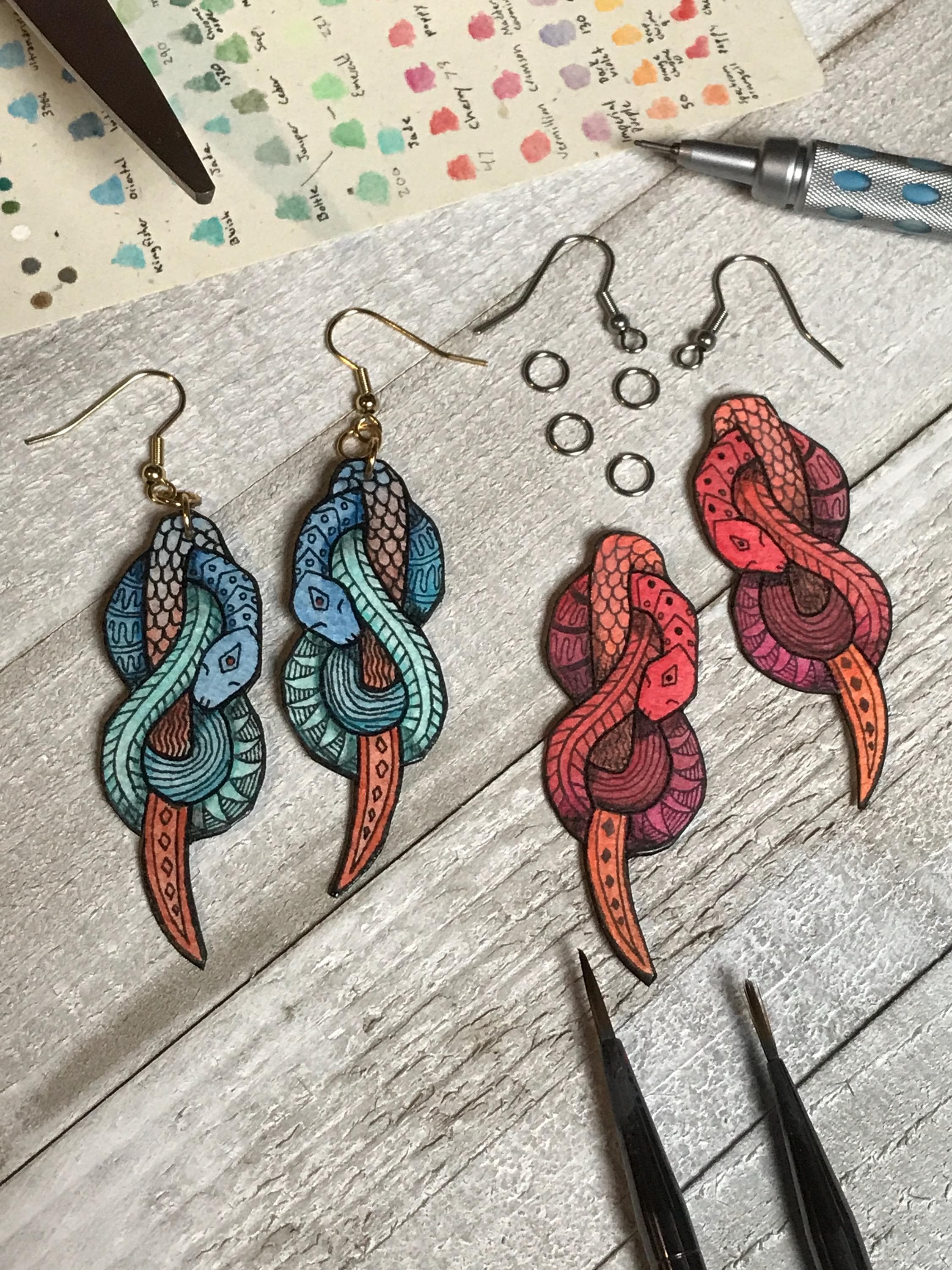 Zentangle Snake Earrings