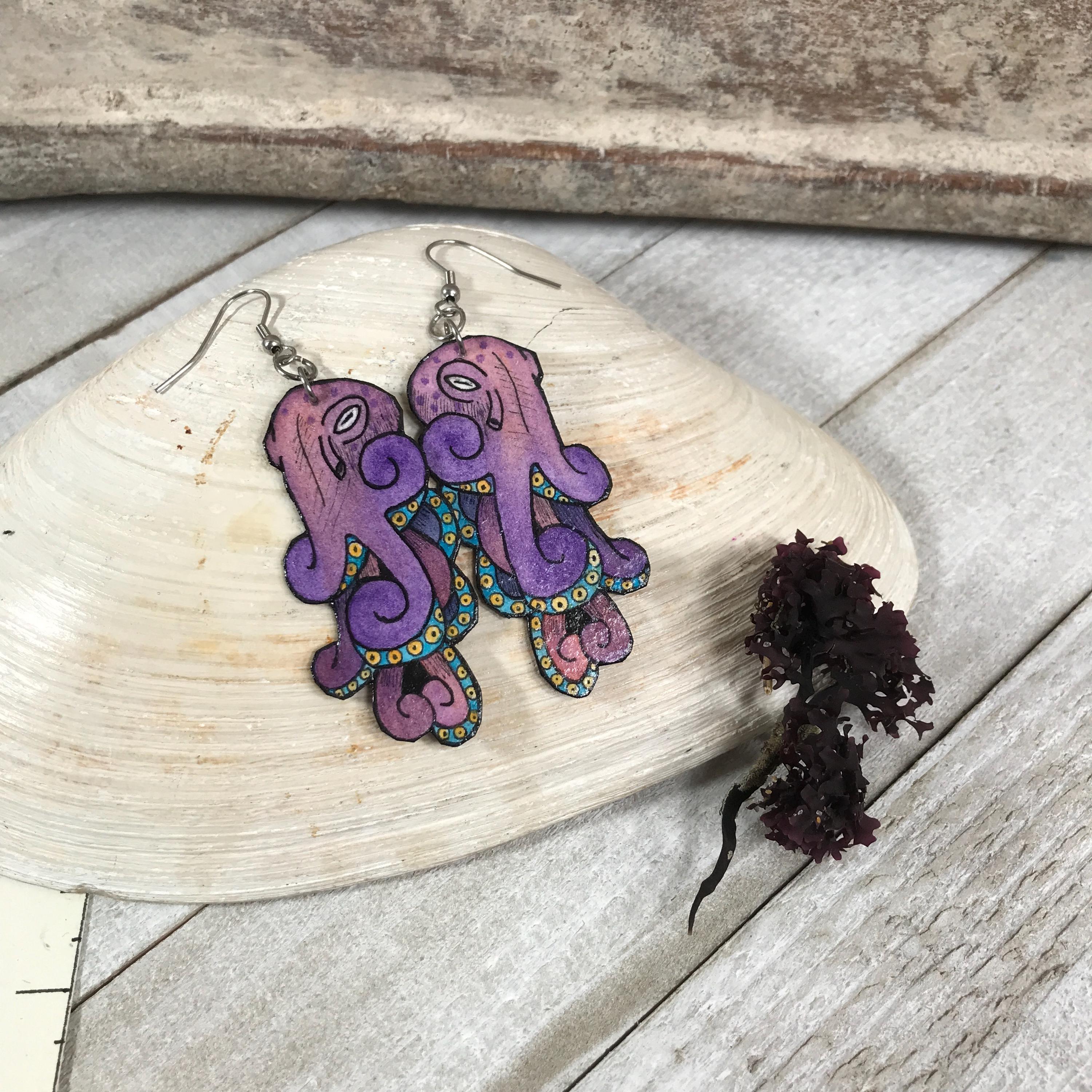 Purple Octopus Earrings