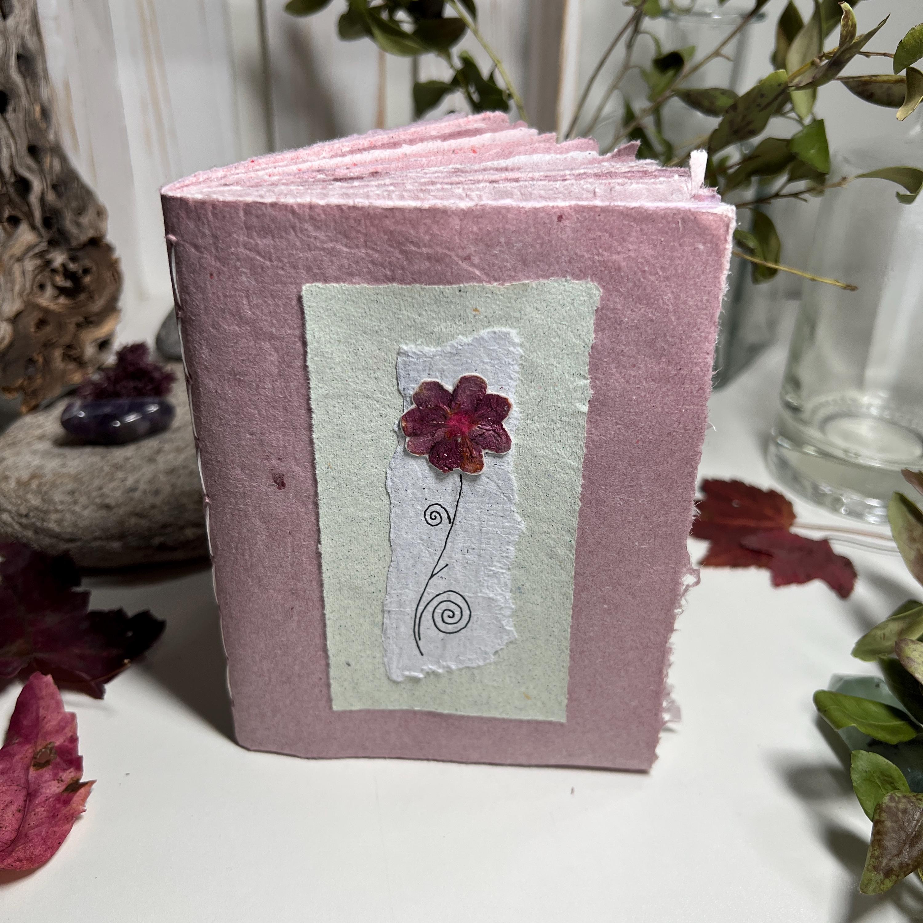 Pink Flower Handmade Paper Notebook