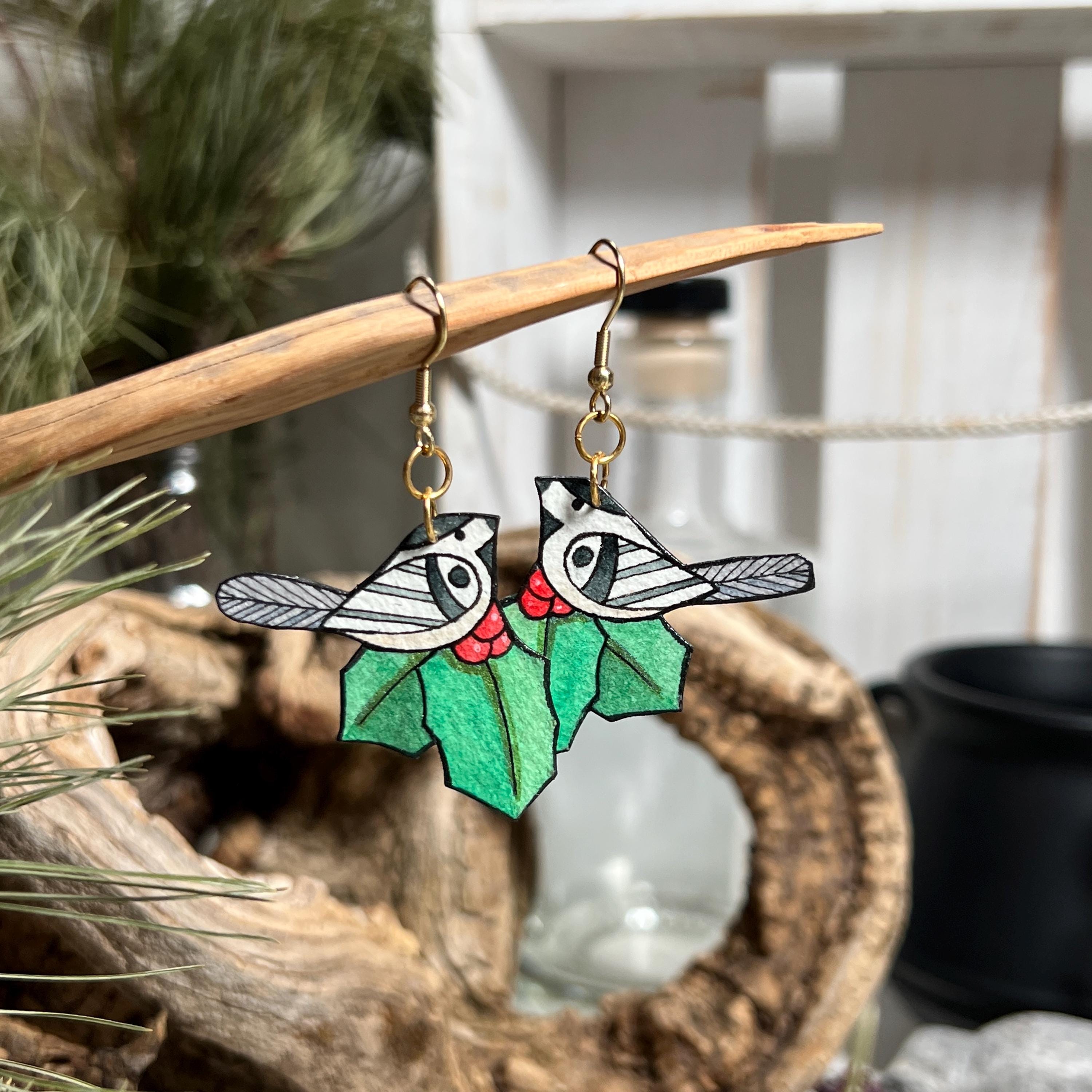 Art Deco Chickadee Earrings
