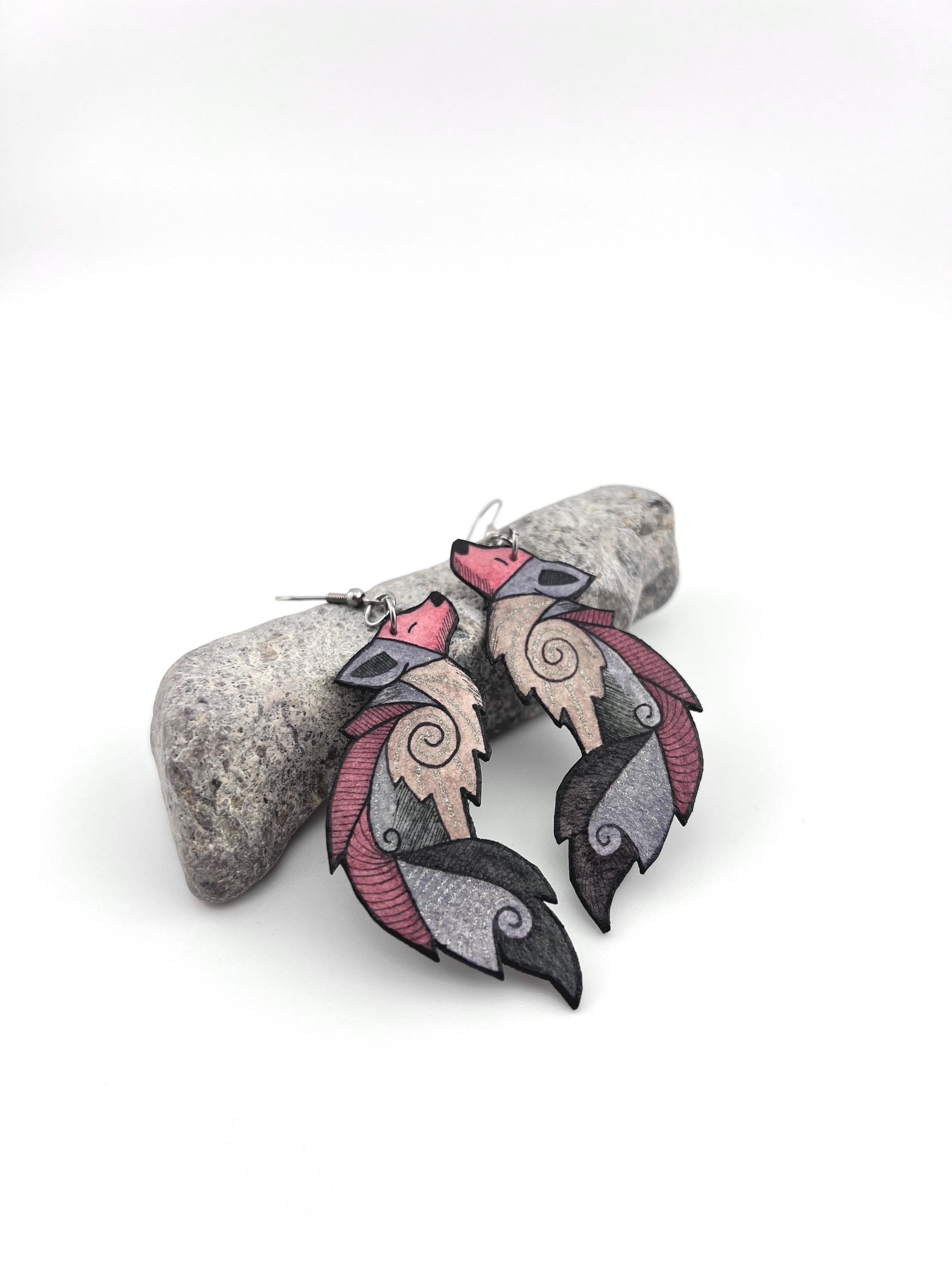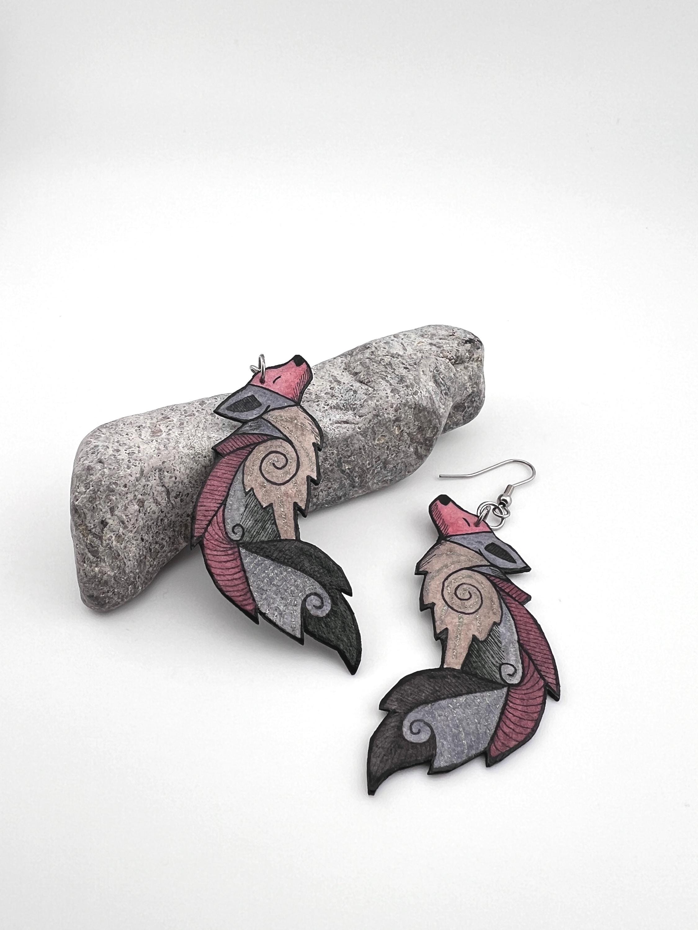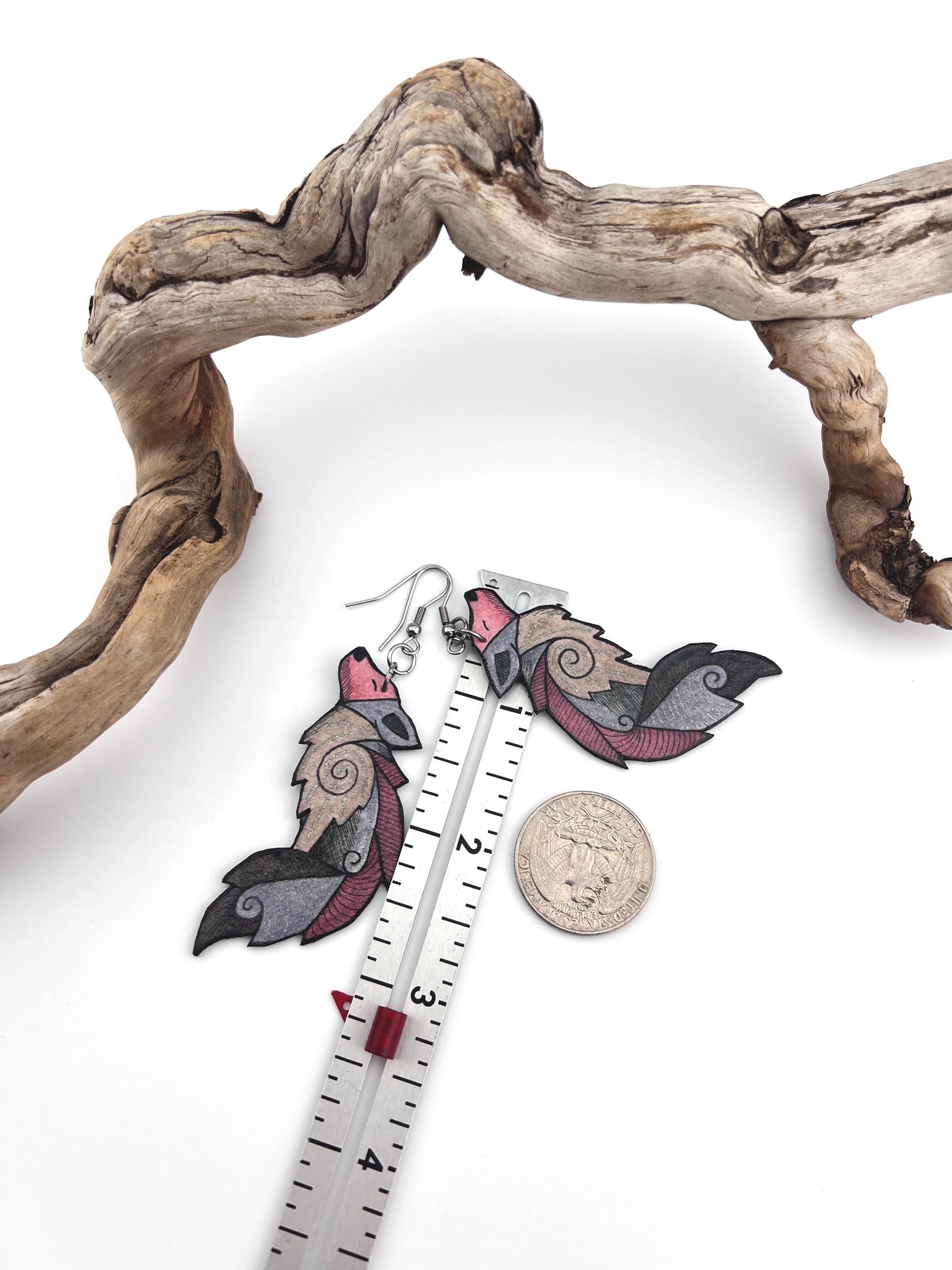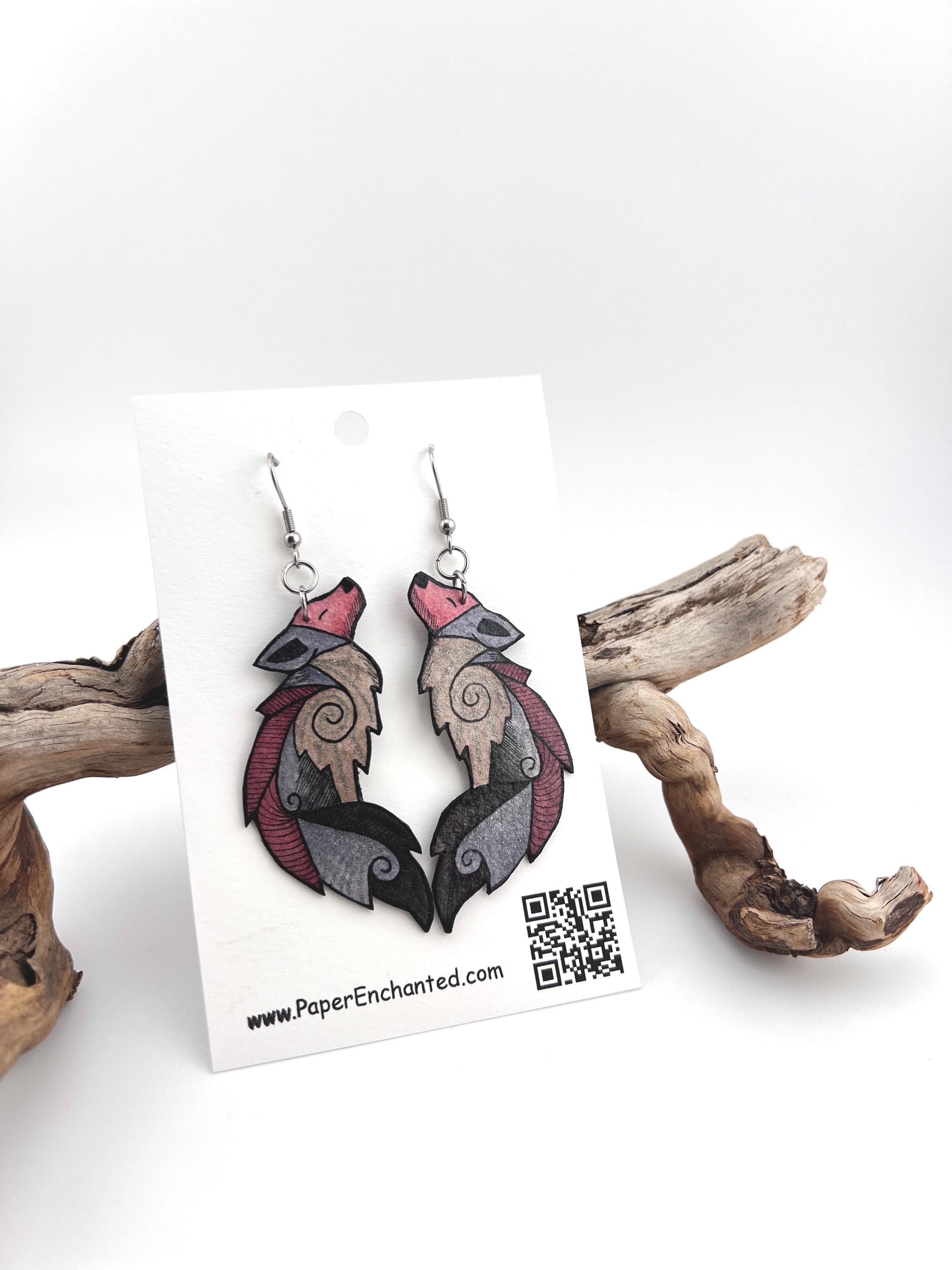 These Red Timberwolf Earrings are original Ink & Watercolor paintings hand painted on 1mm thick Italian Pressed Cotton Watercolor Paper. I paint the front and the back in full detail using Archival Pigma Ink and Inktense Watercolors. After painting, I coat them in two layers of protective lacquer, making them UV-Resistant and Water Resistant. Once complete, they have almost no weight. All hardware is hypoallergenic Stainless Steel or Gold Finished Stainless Steel.