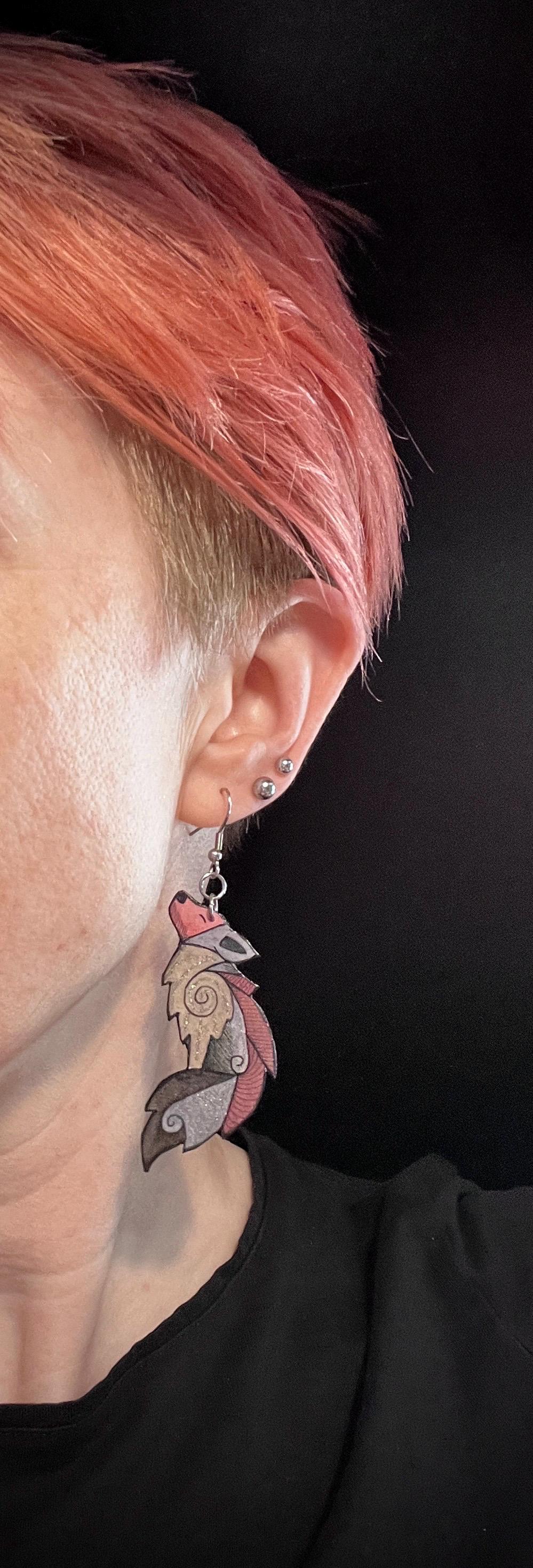 Howling Red Wolf Earrings, Spirit Animal Jewelry, Timberwolf, Lightweight