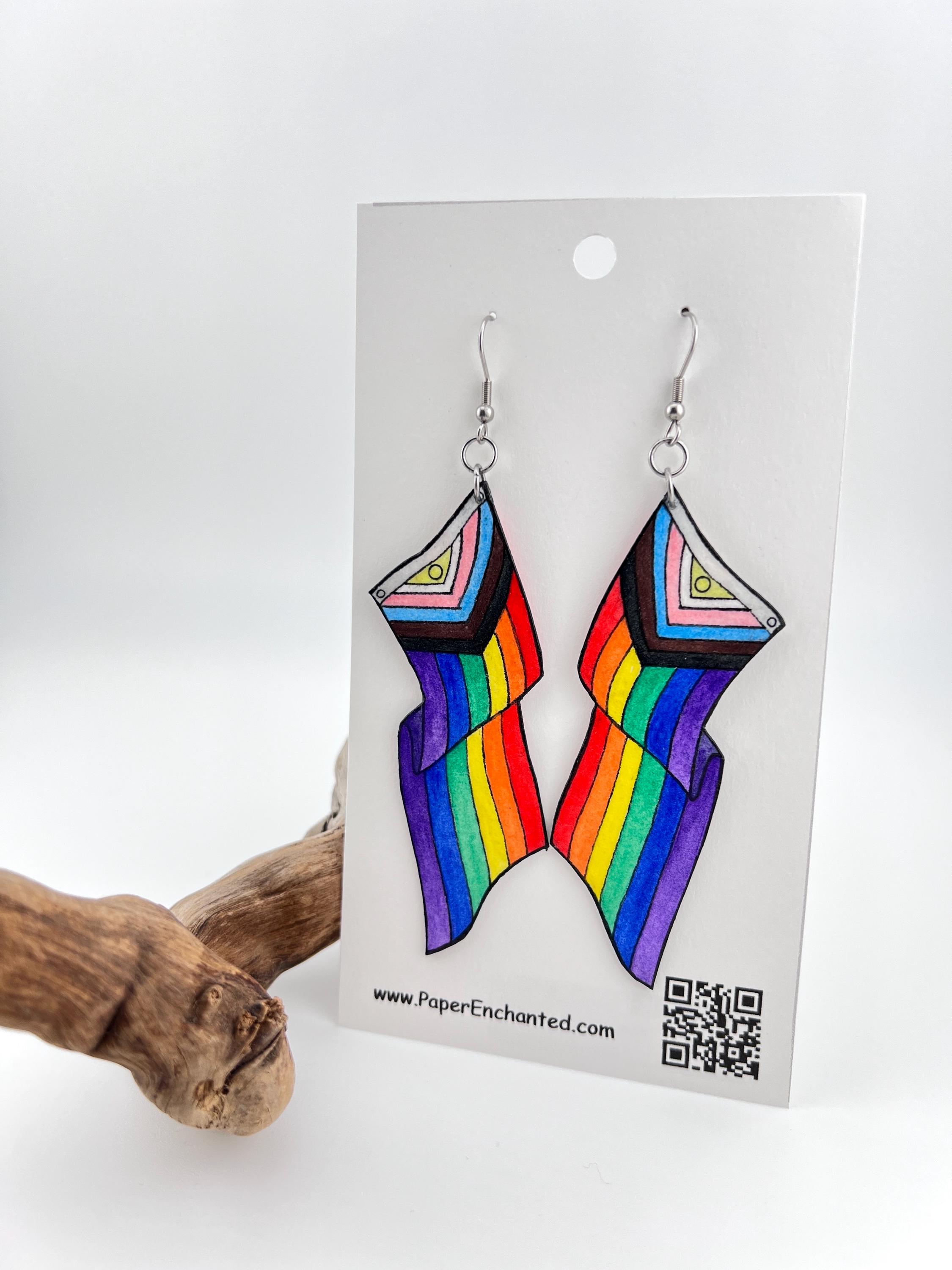 Progress Flag Earrings, LGBTQ+ Pride Jewelry, Oversized, Hand Made, Lightweight