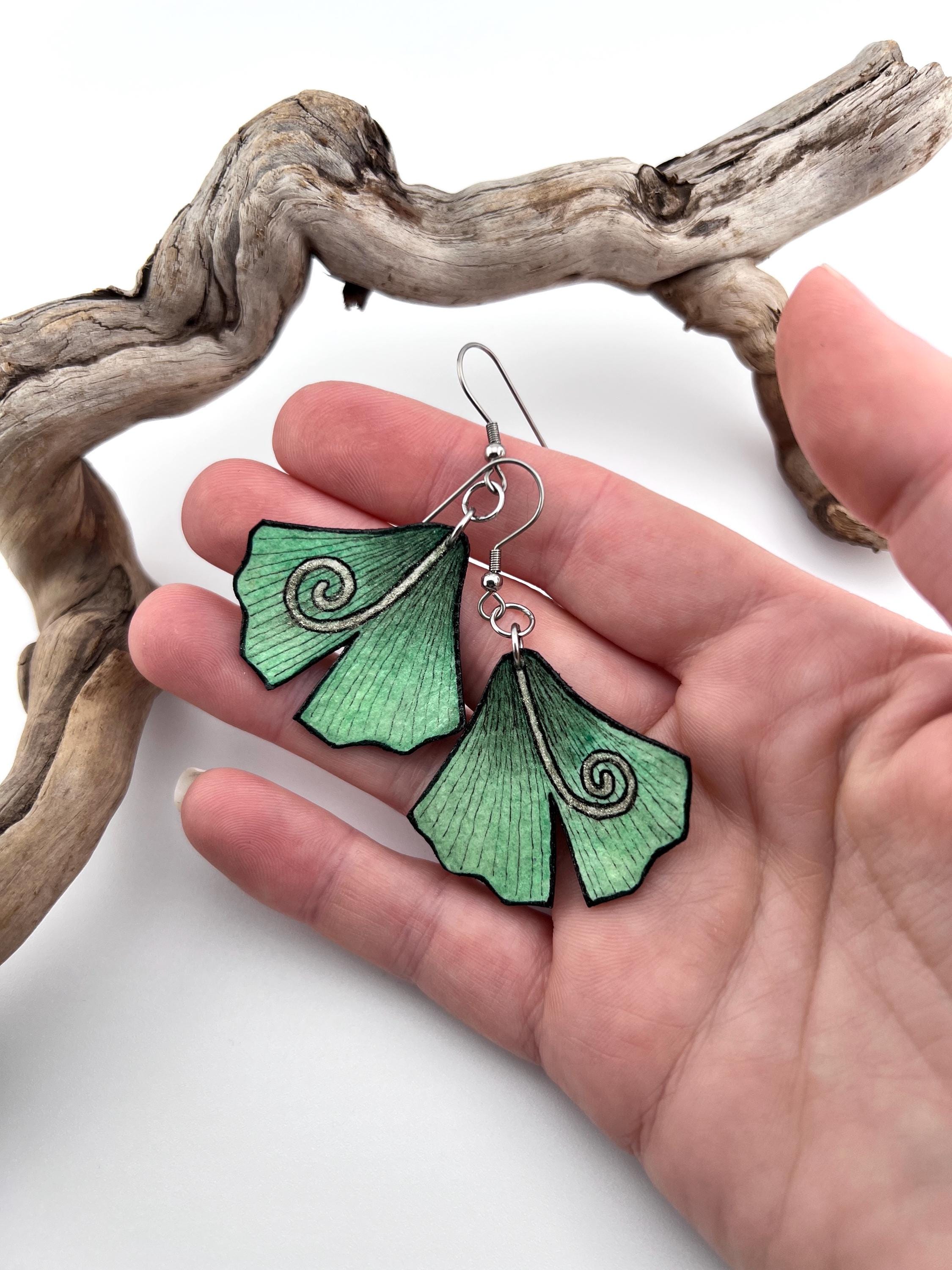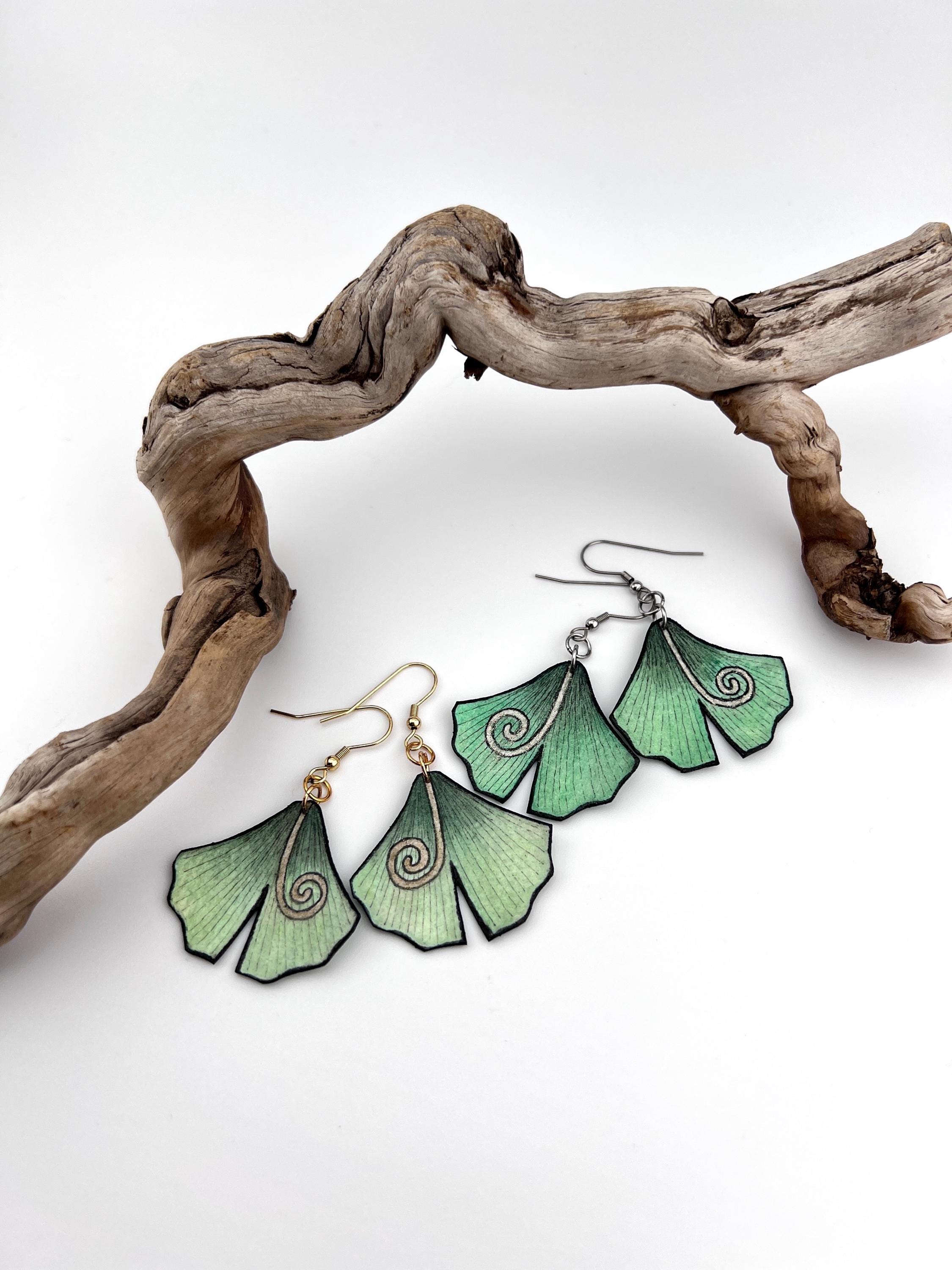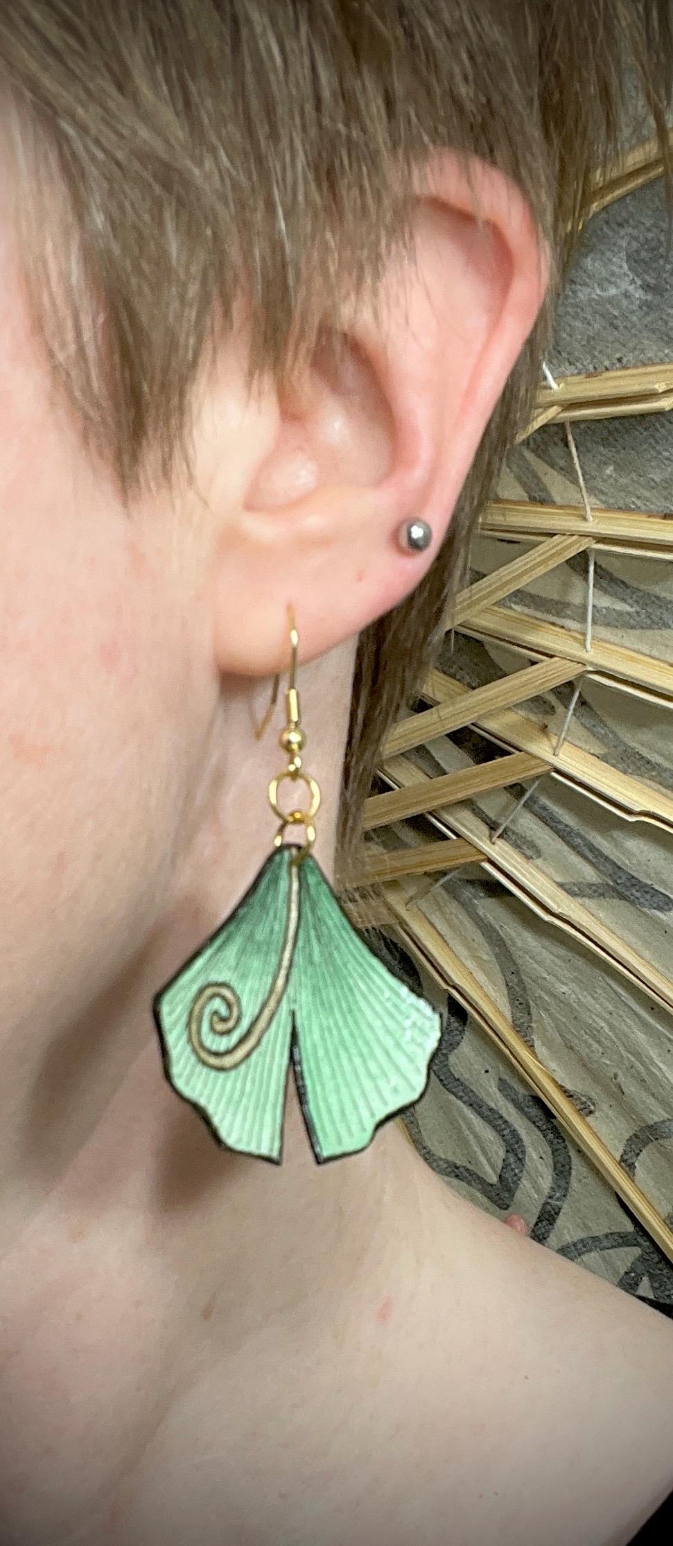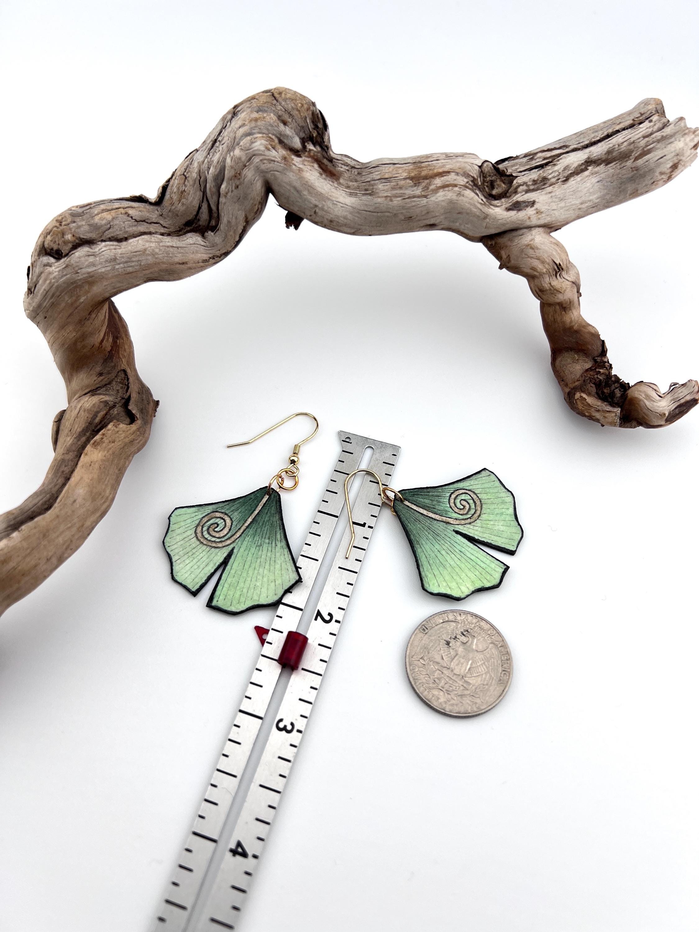 Ginkgo Leaf Earrings: Art Nouveau Style, Hand Painted, Lightweight