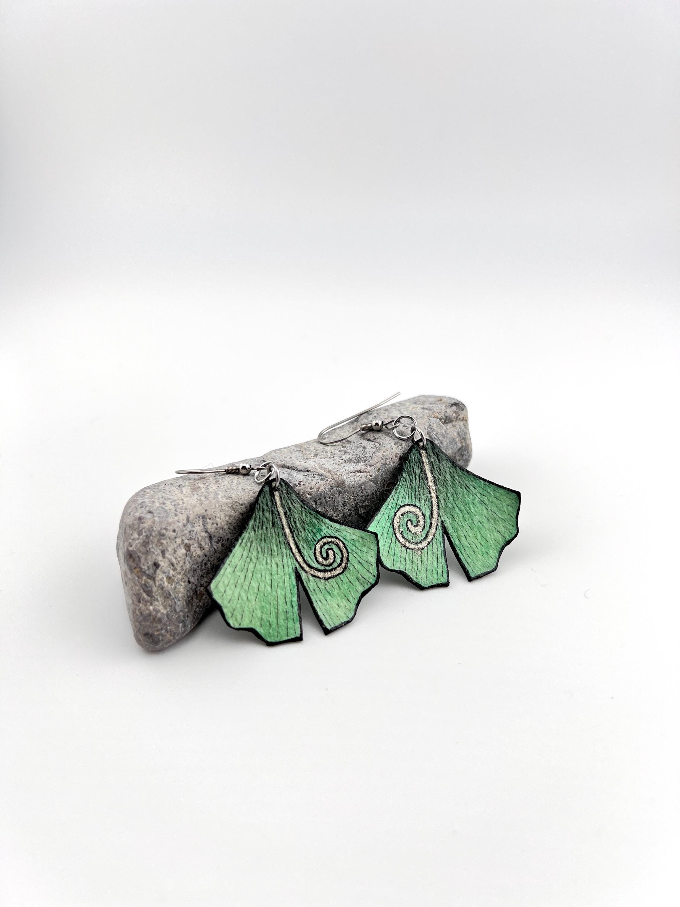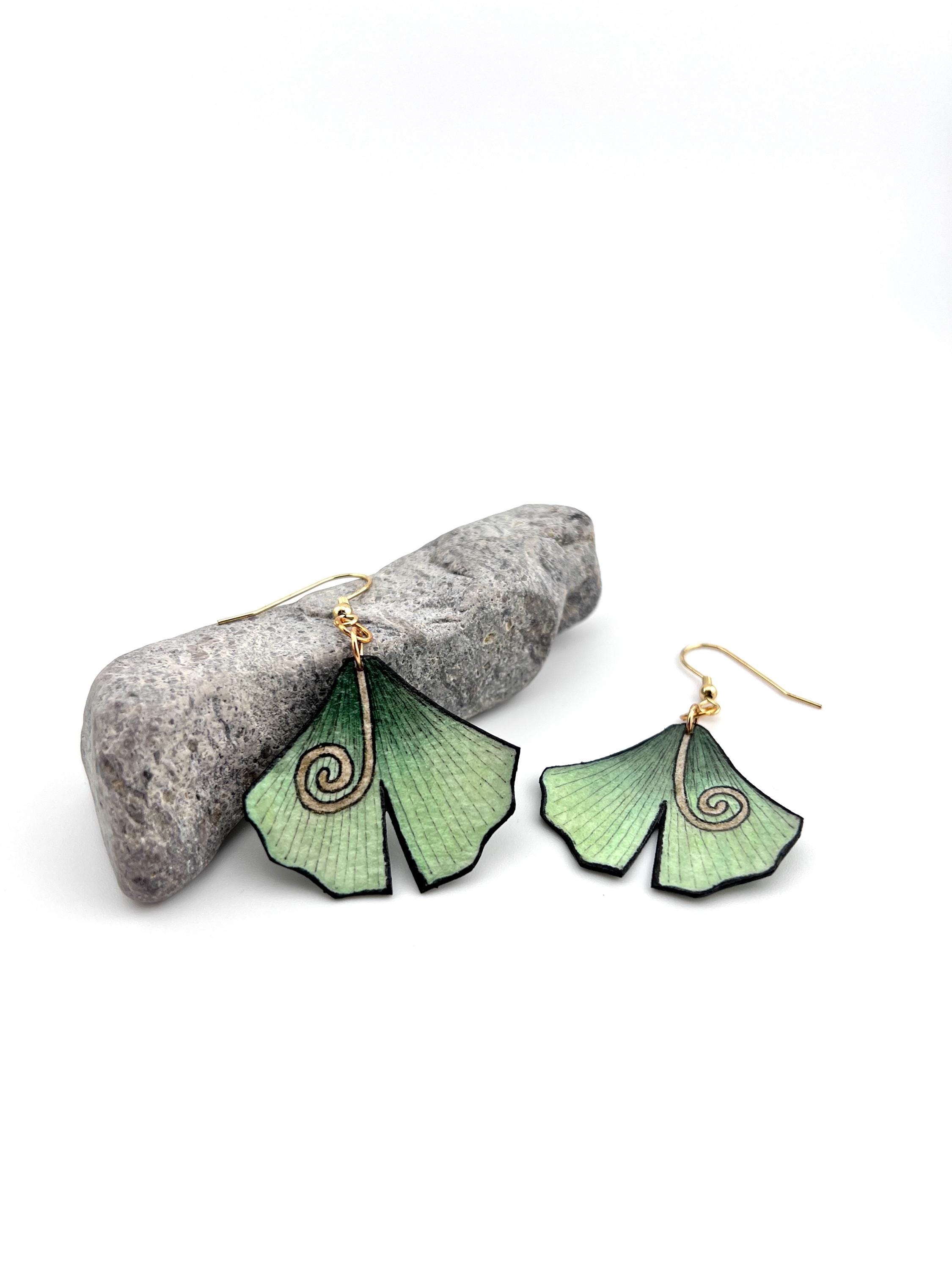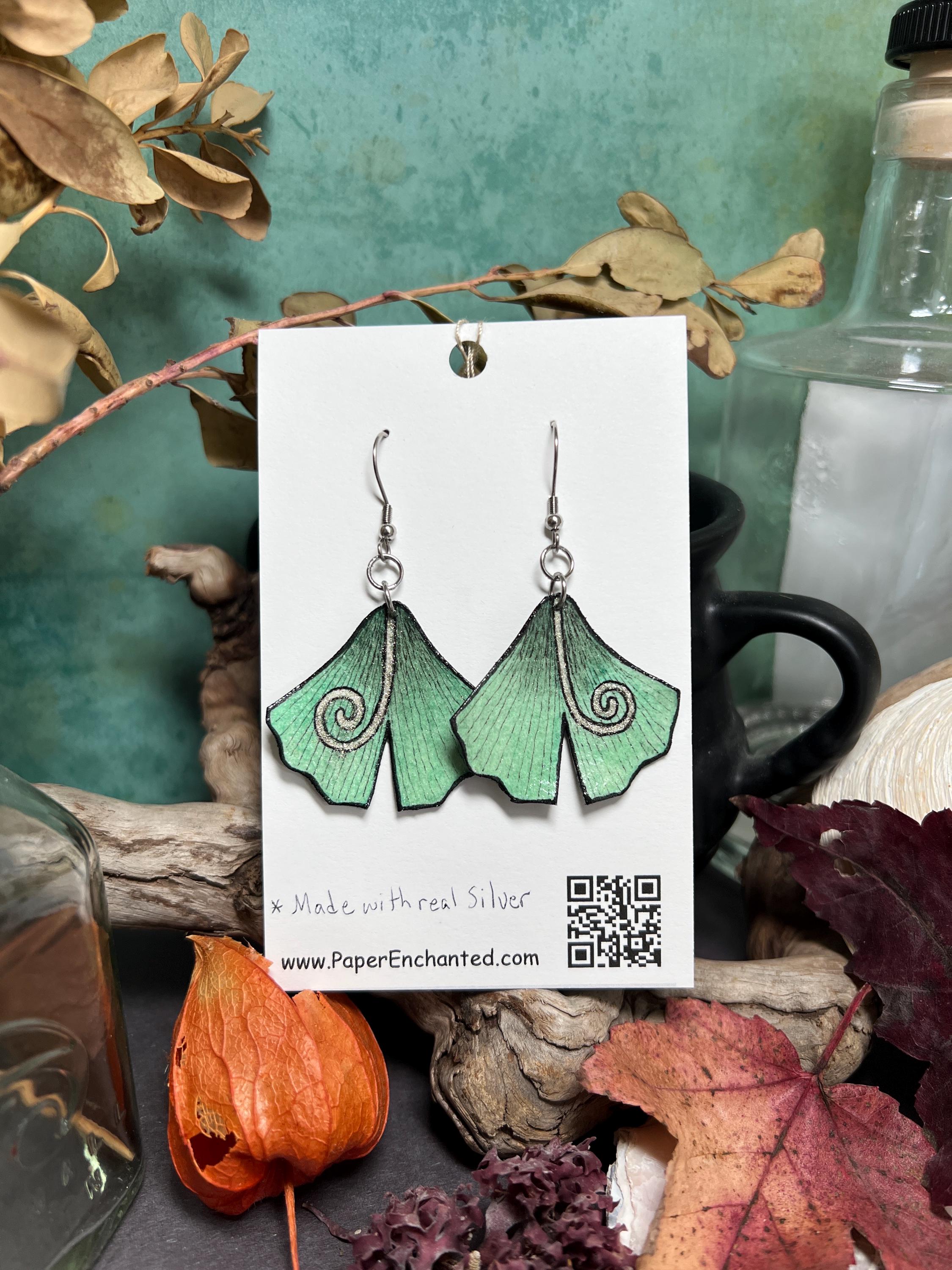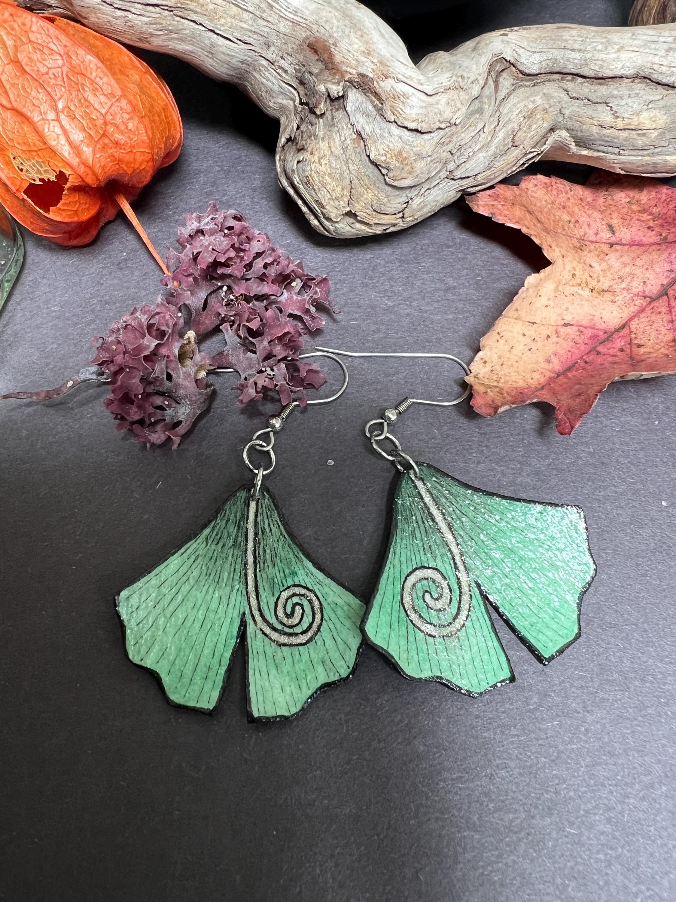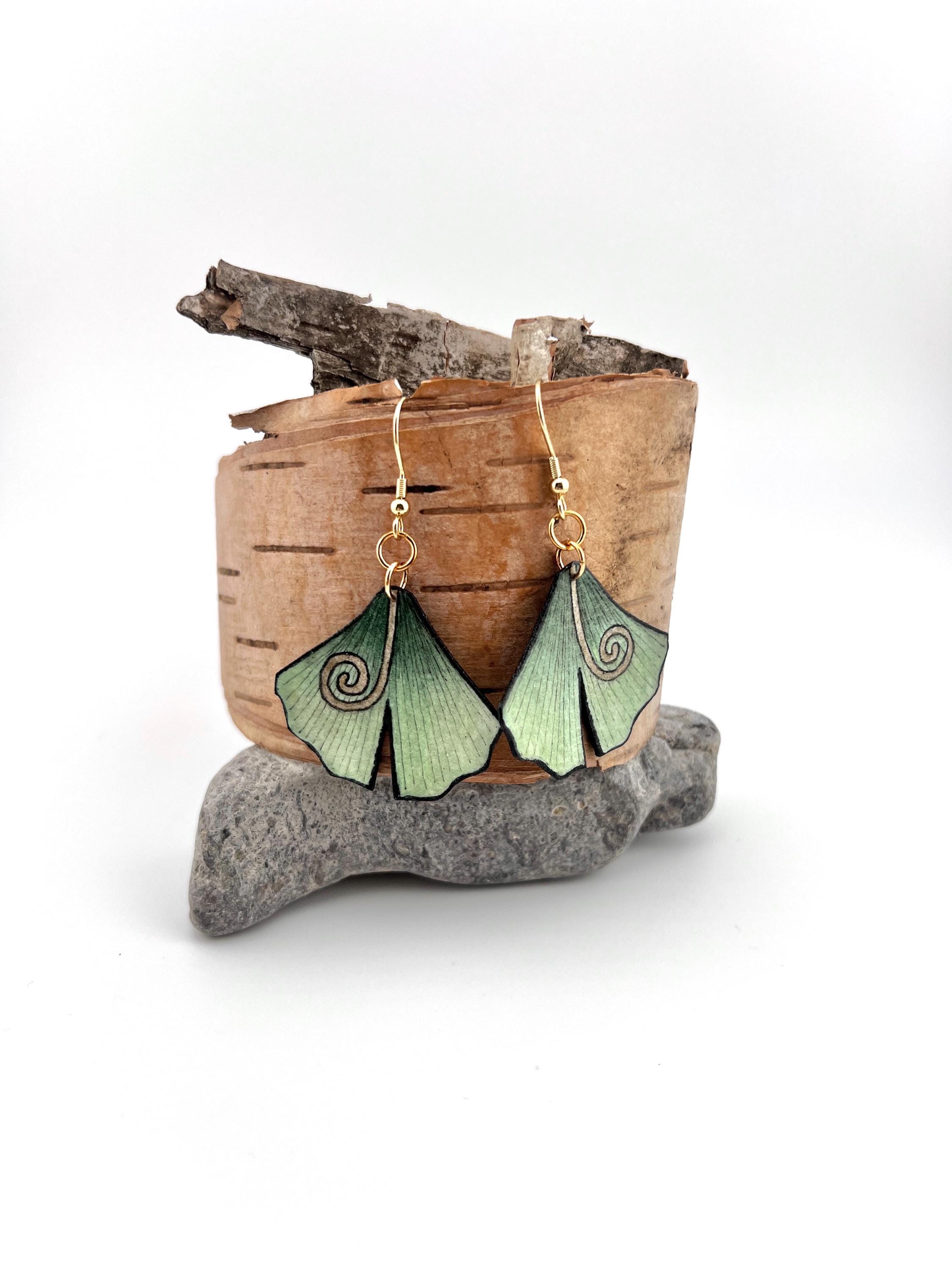 Ginkgo Leaf Earrings: Art Nouveau Style, Hand Painted, Lightweight