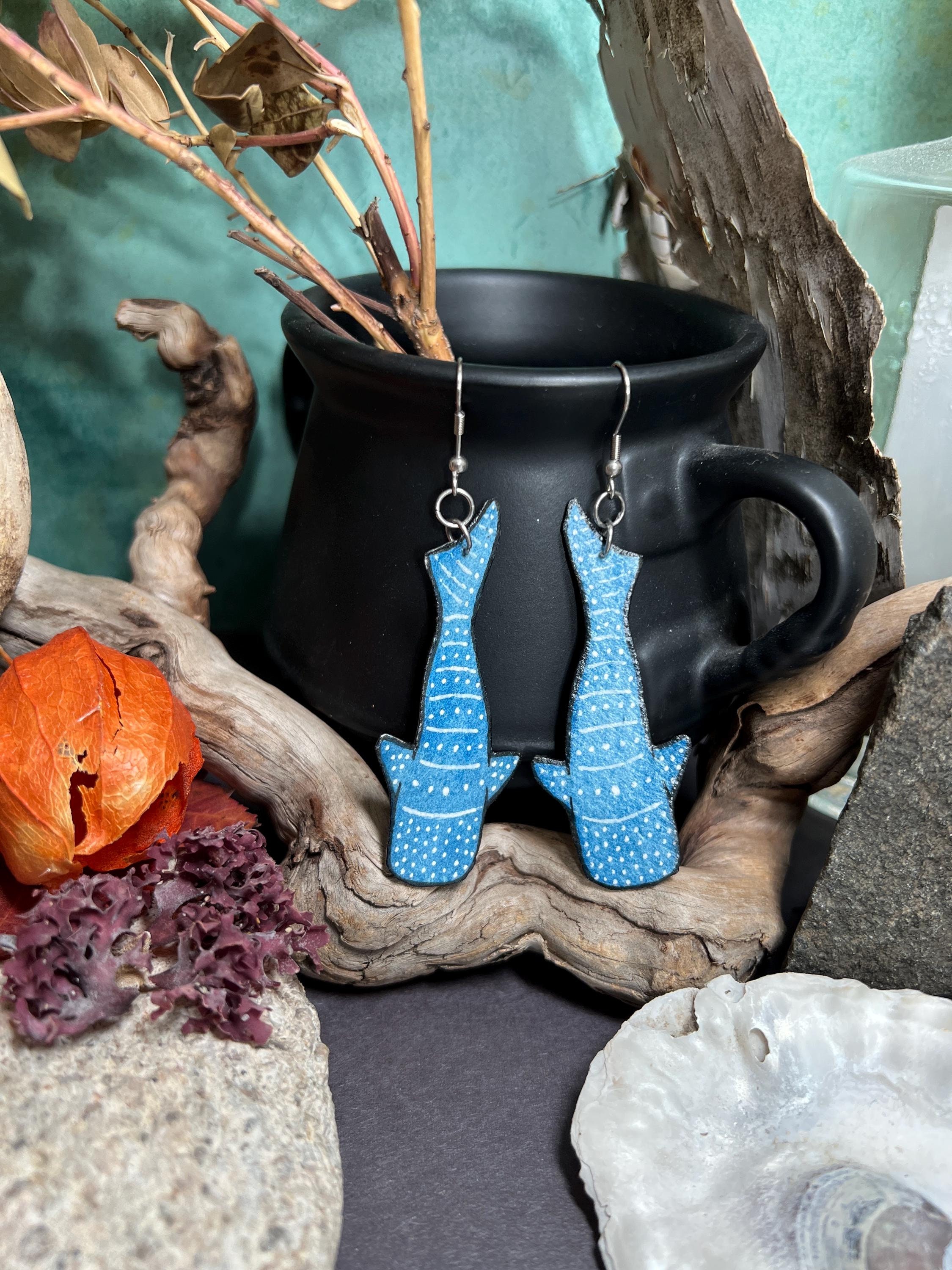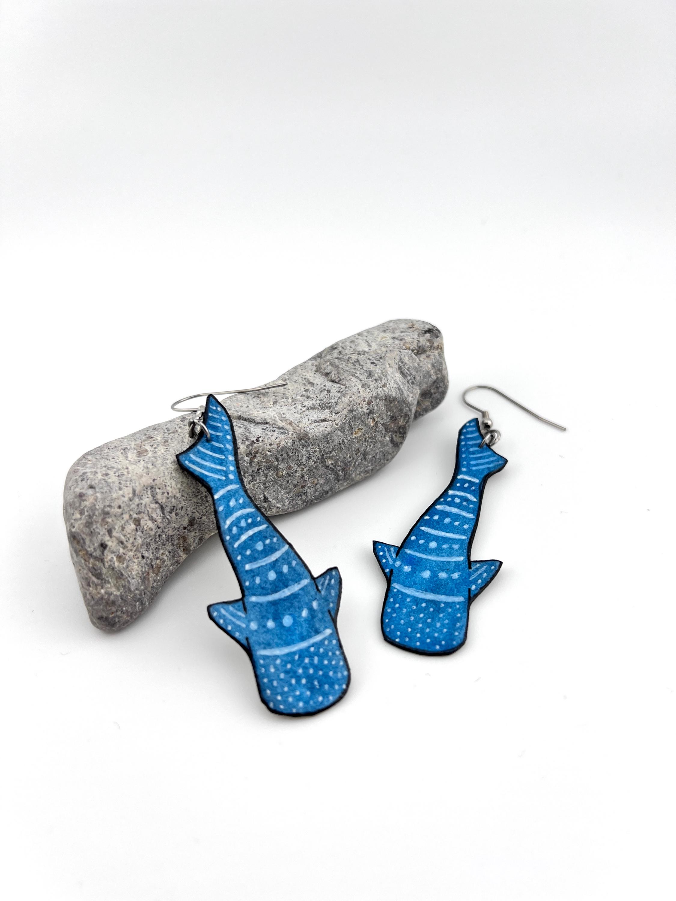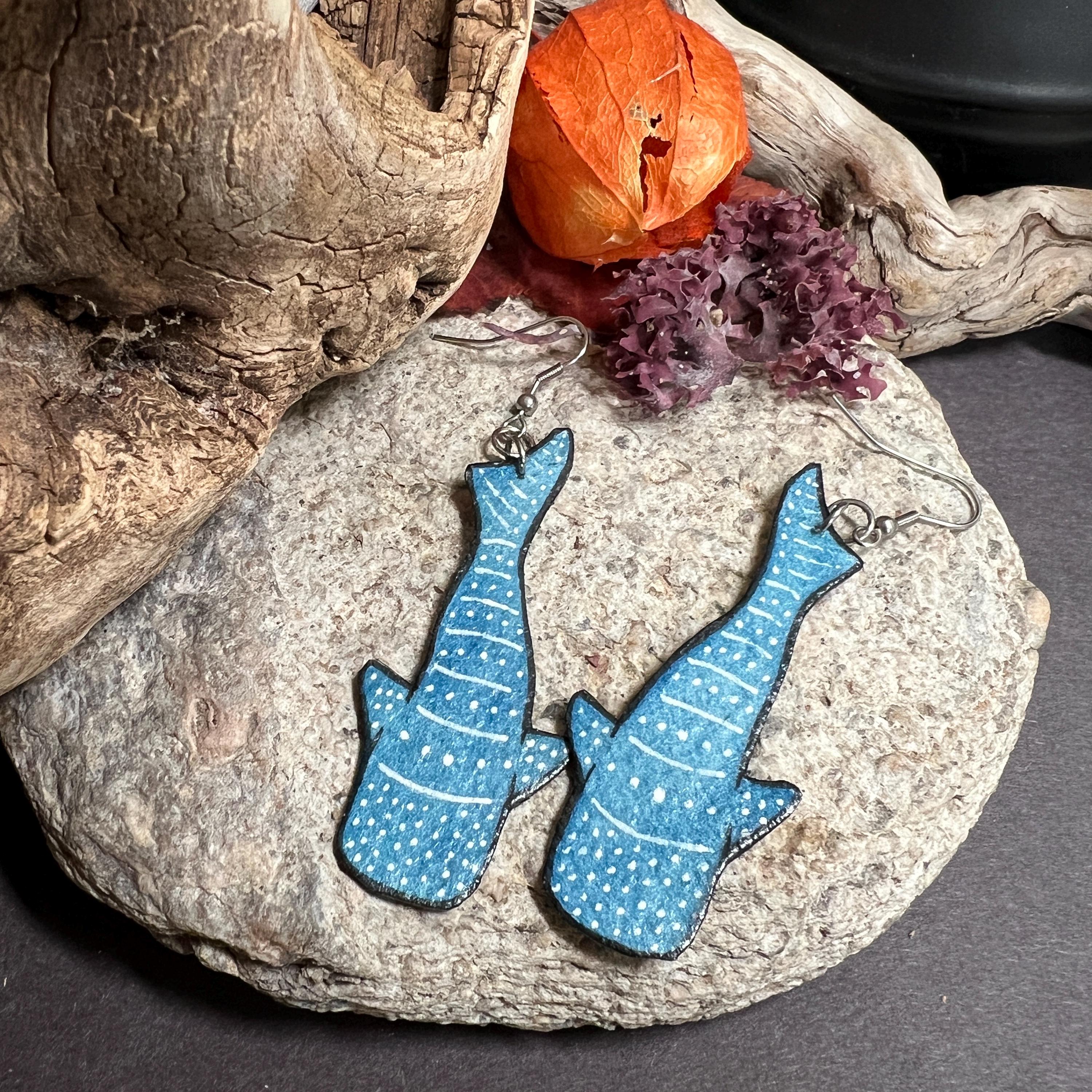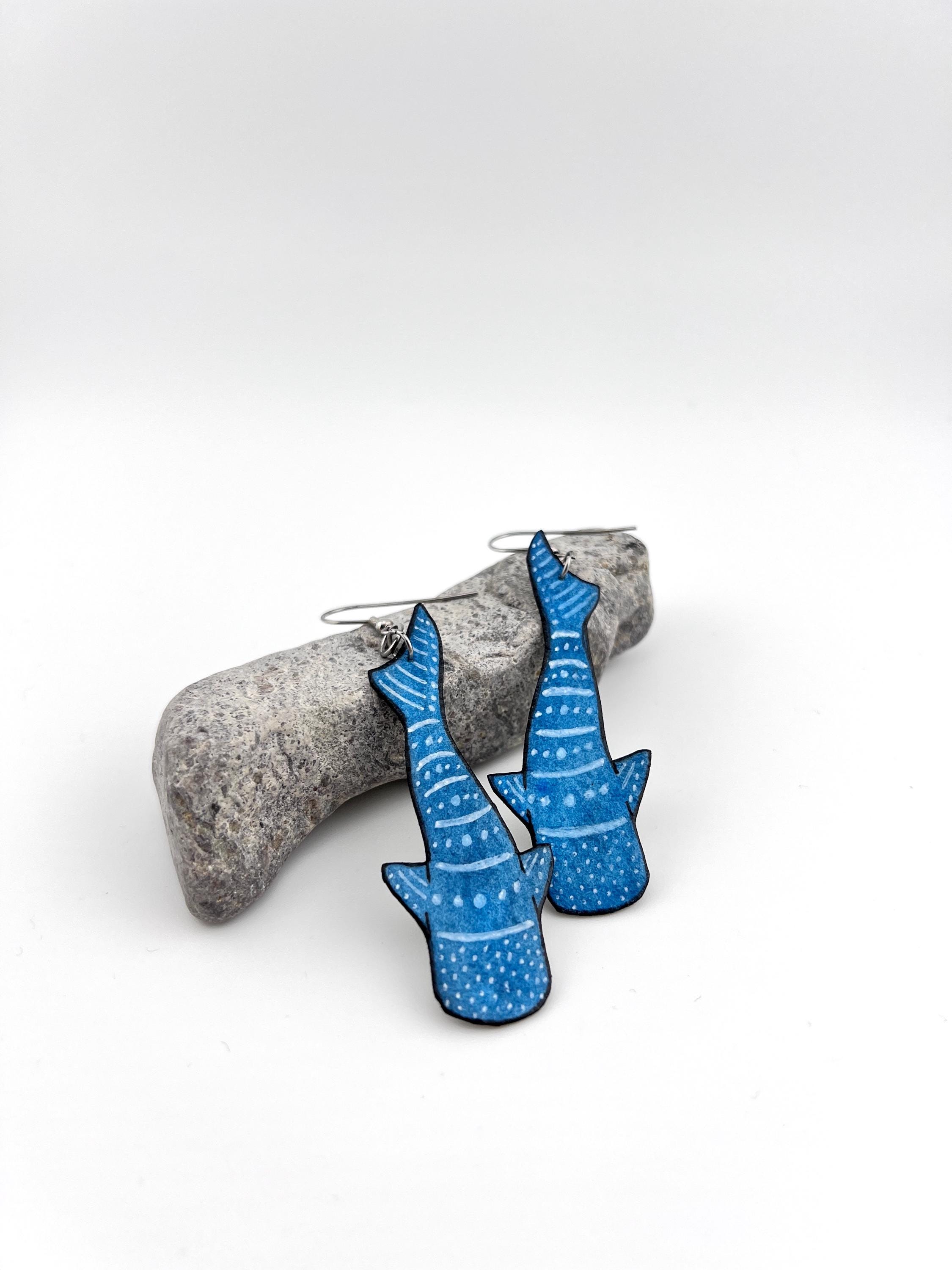 Blue Whale Shark Earrings, Hand Painted, Lightweight
