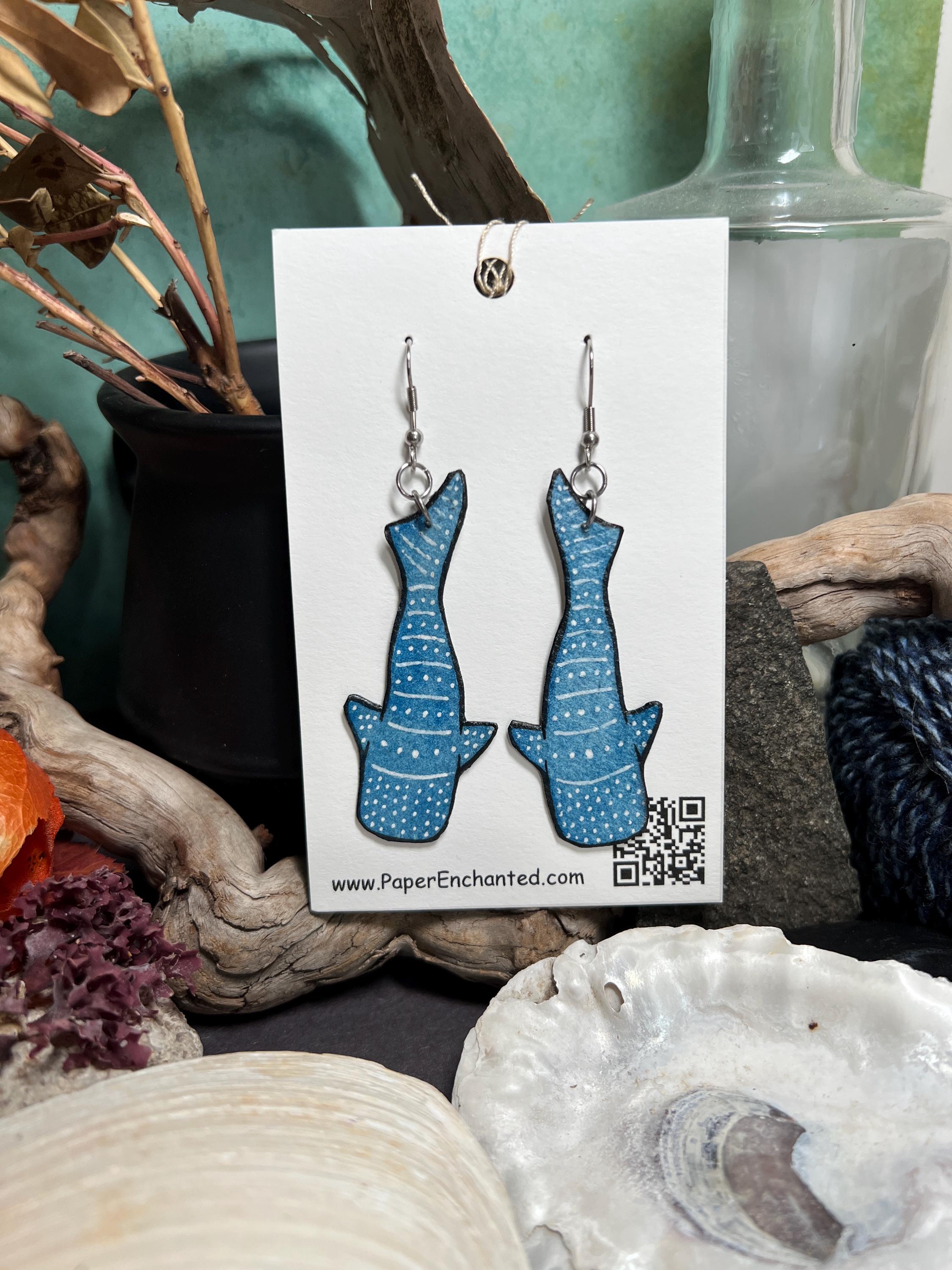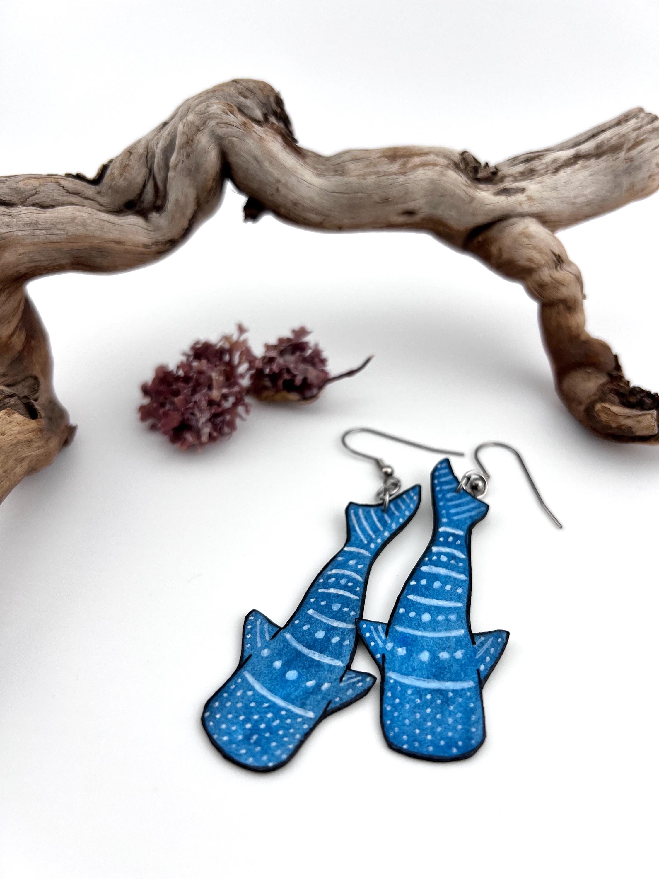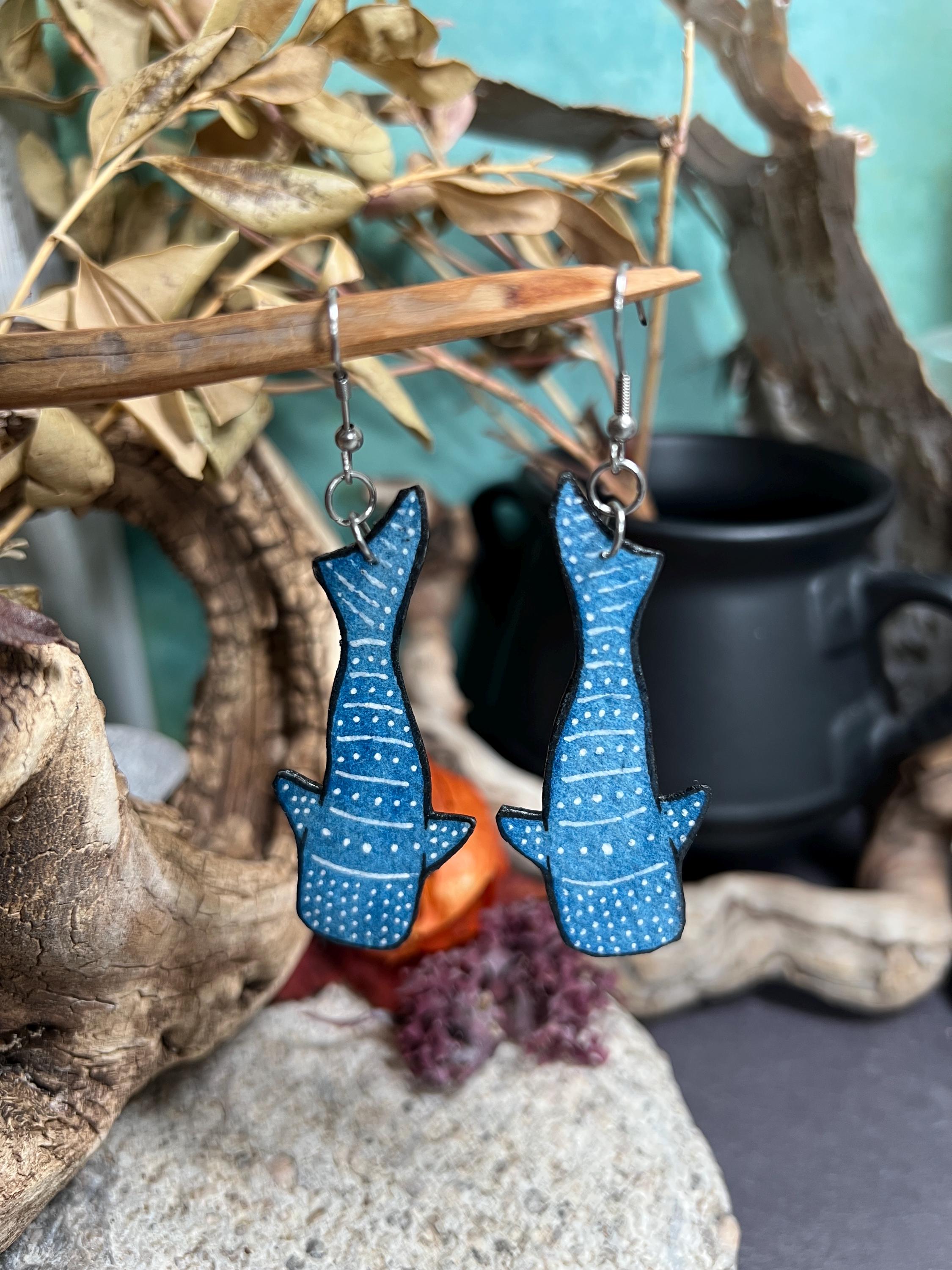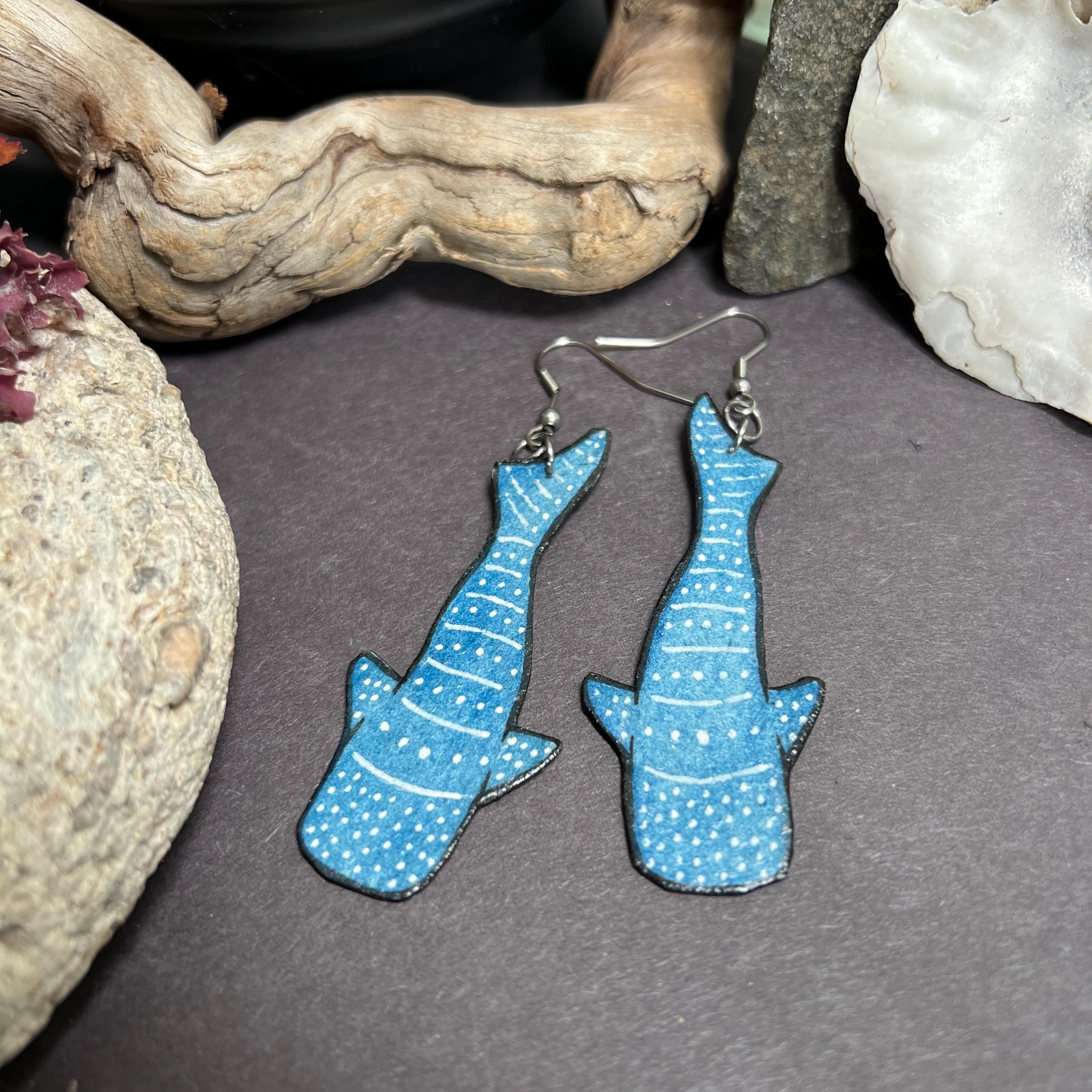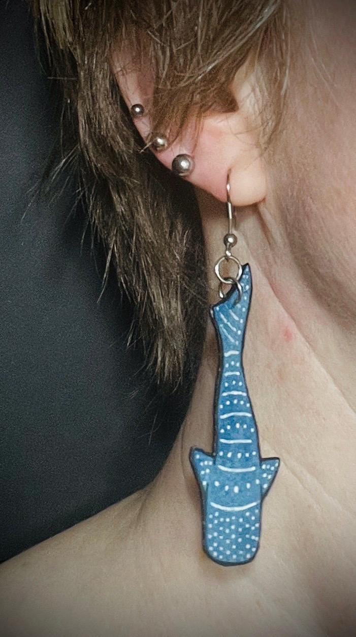 Blue Whale Shark Earrings, Hand Painted, Lightweight