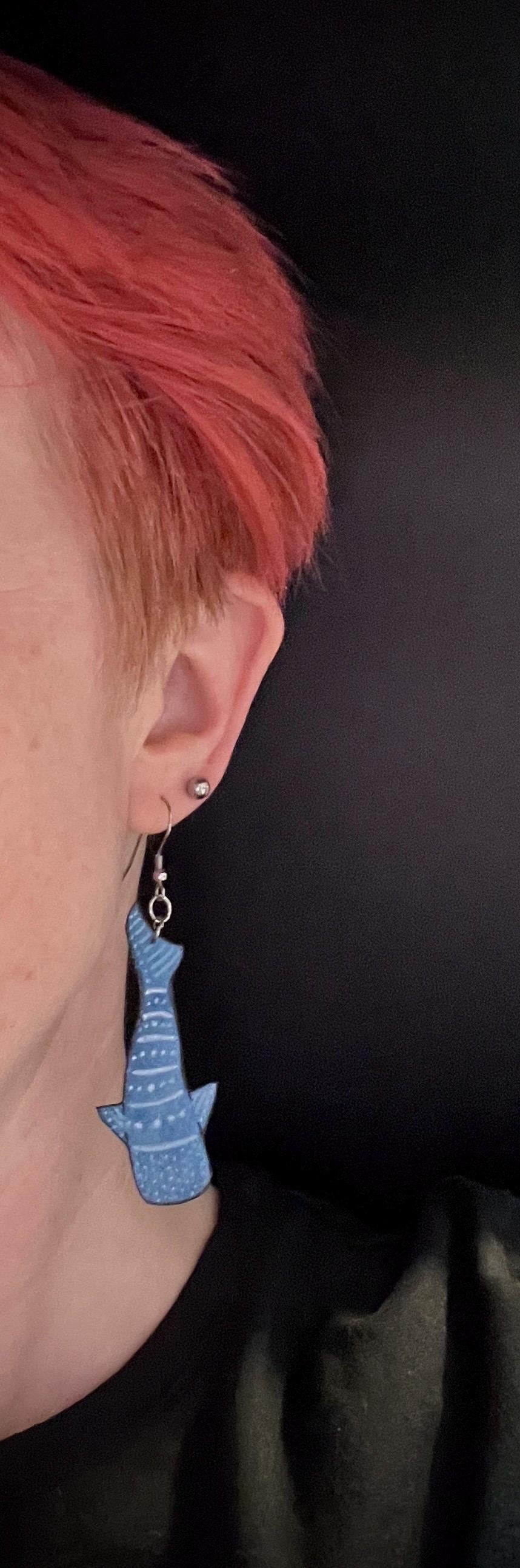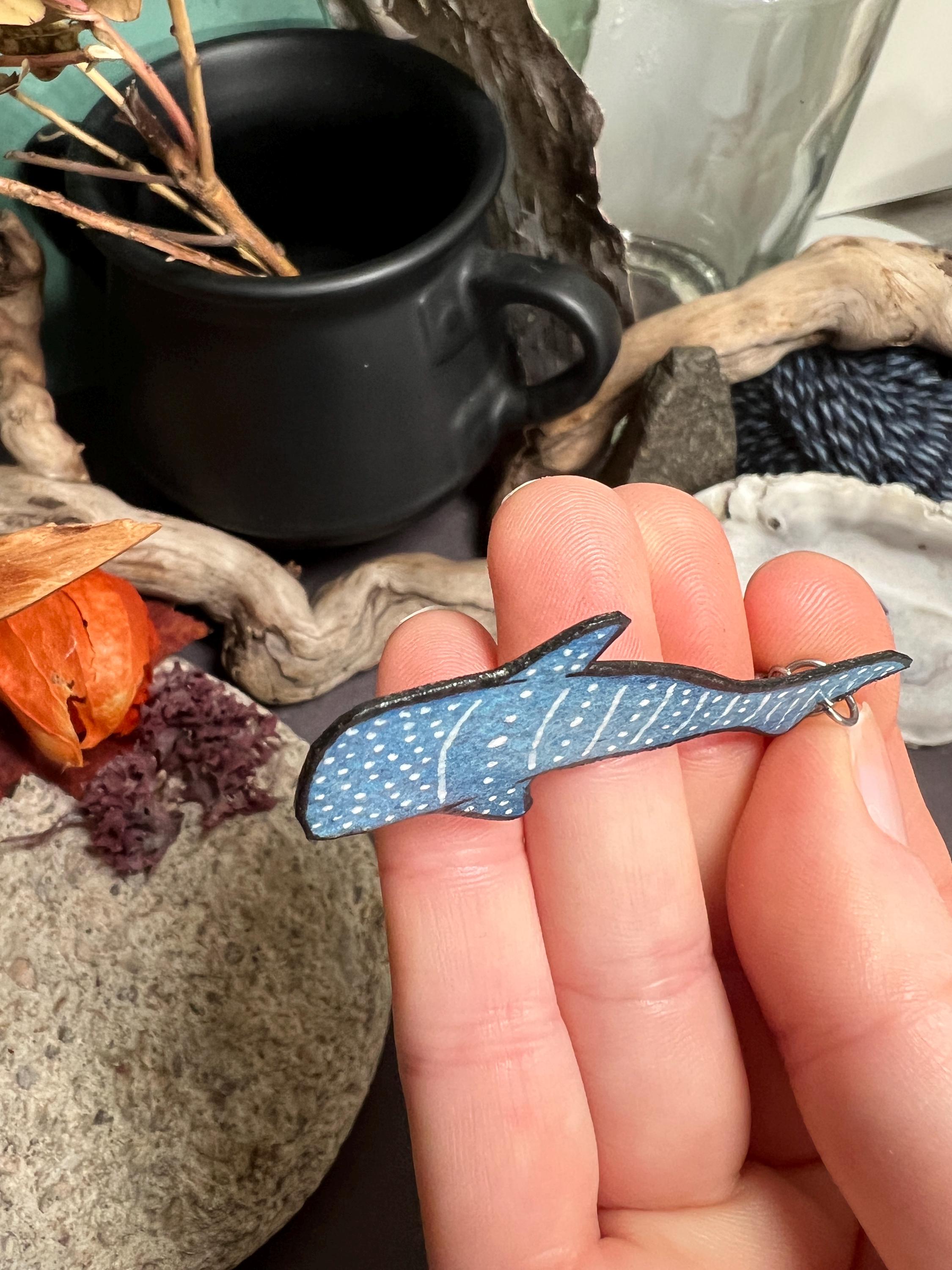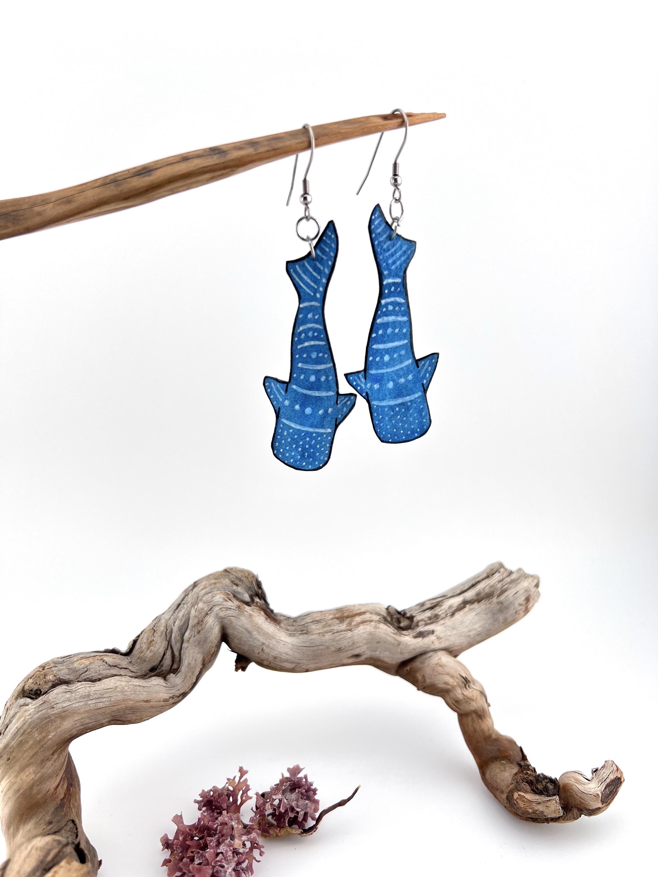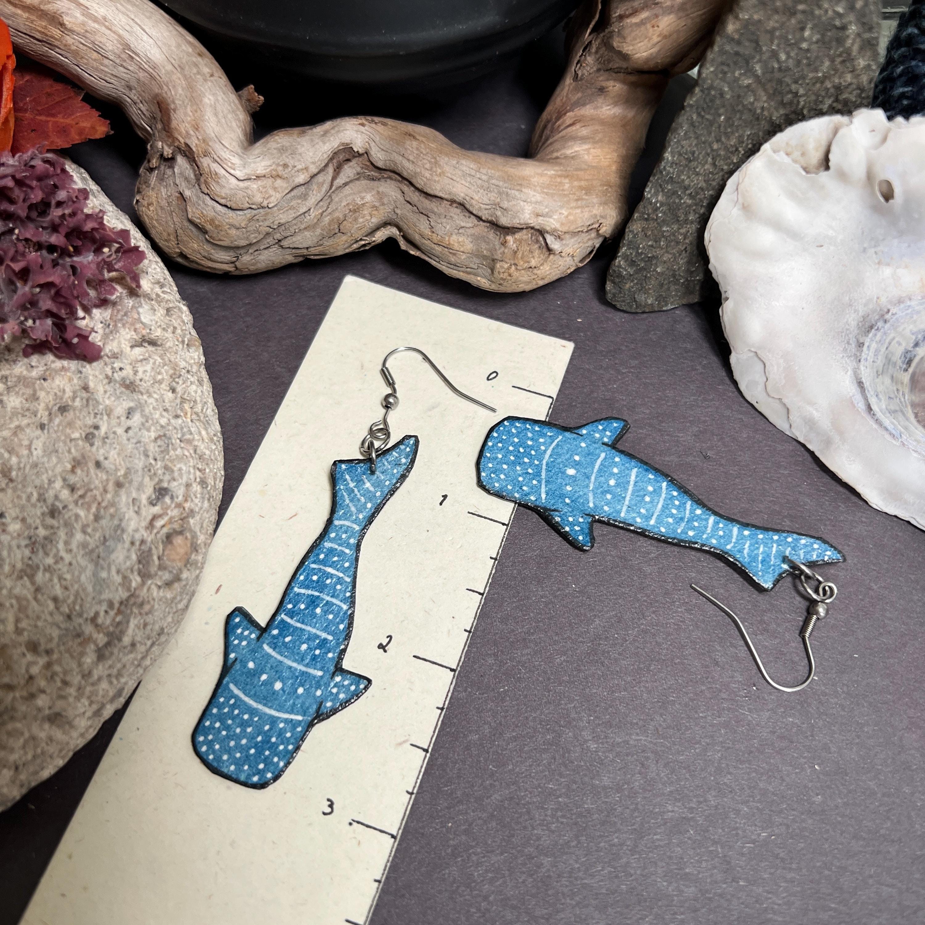 Blue Whale Shark Earrings, Hand Painted, Lightweight