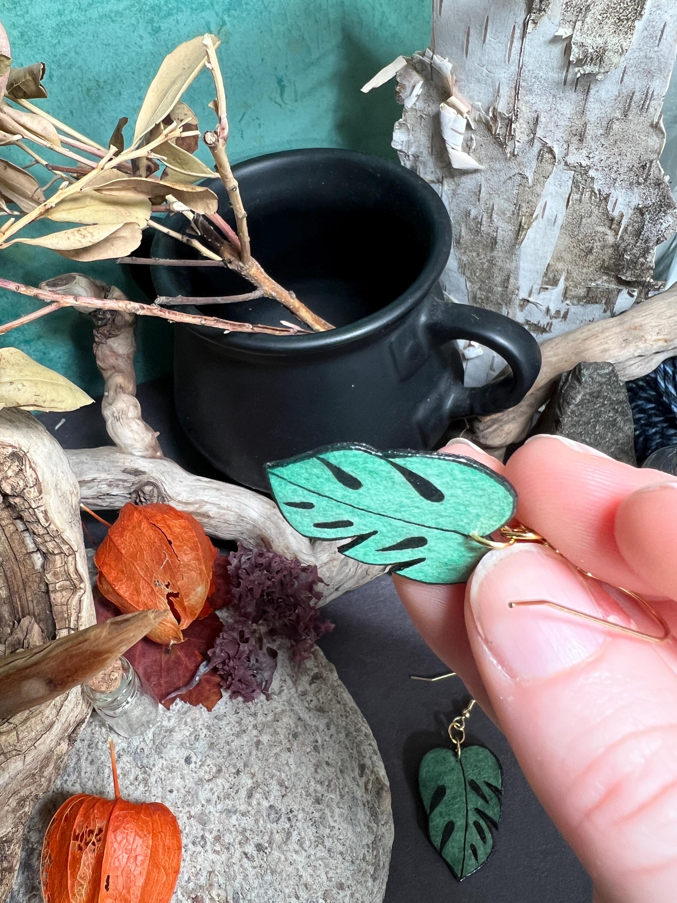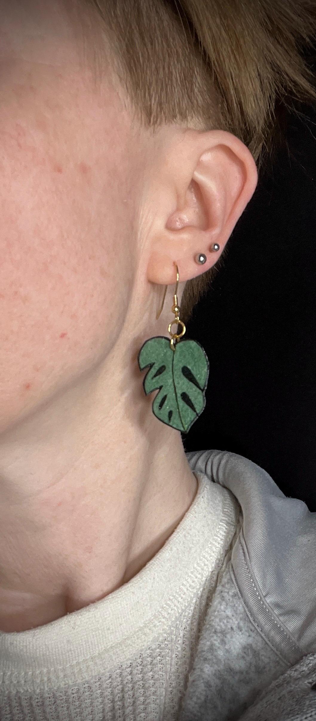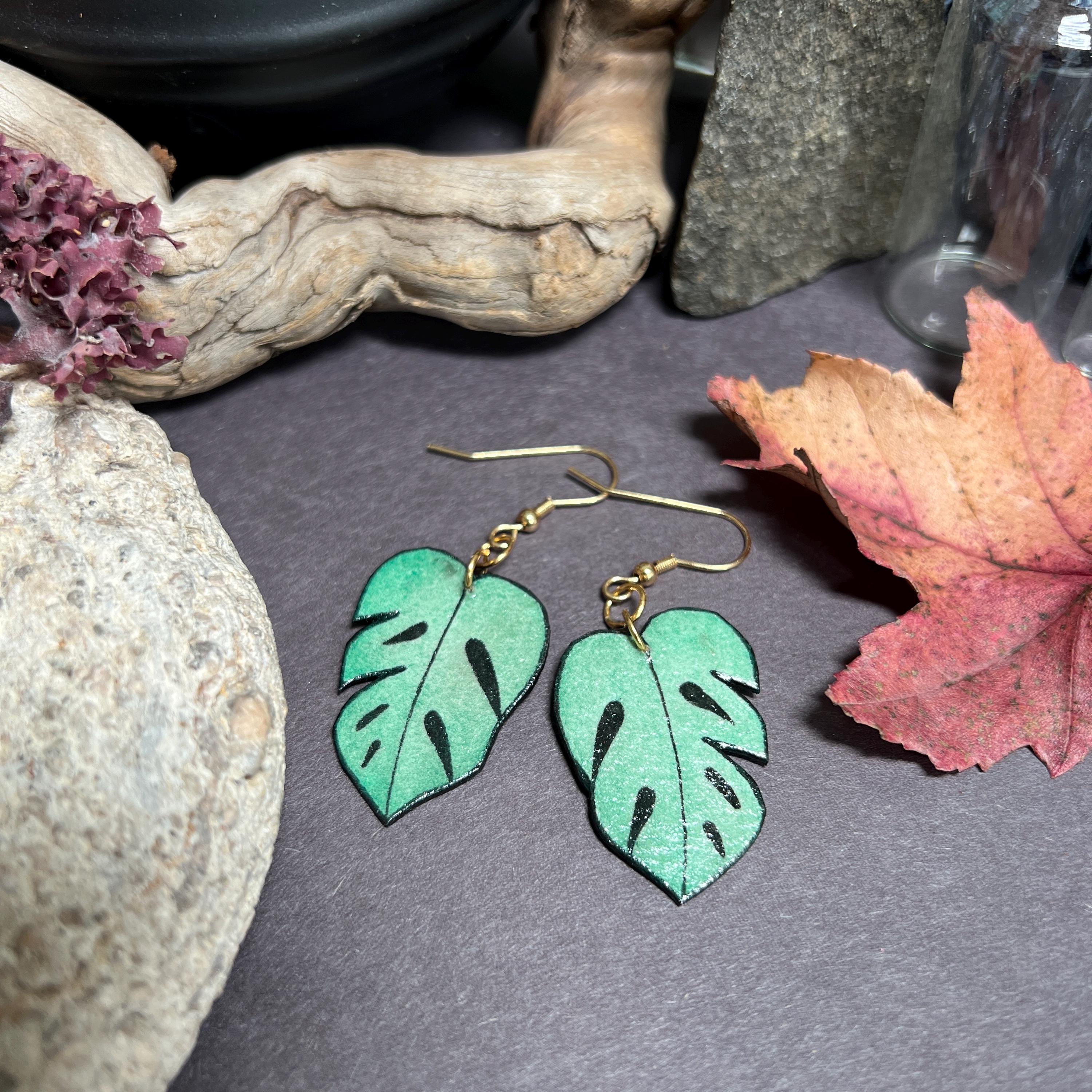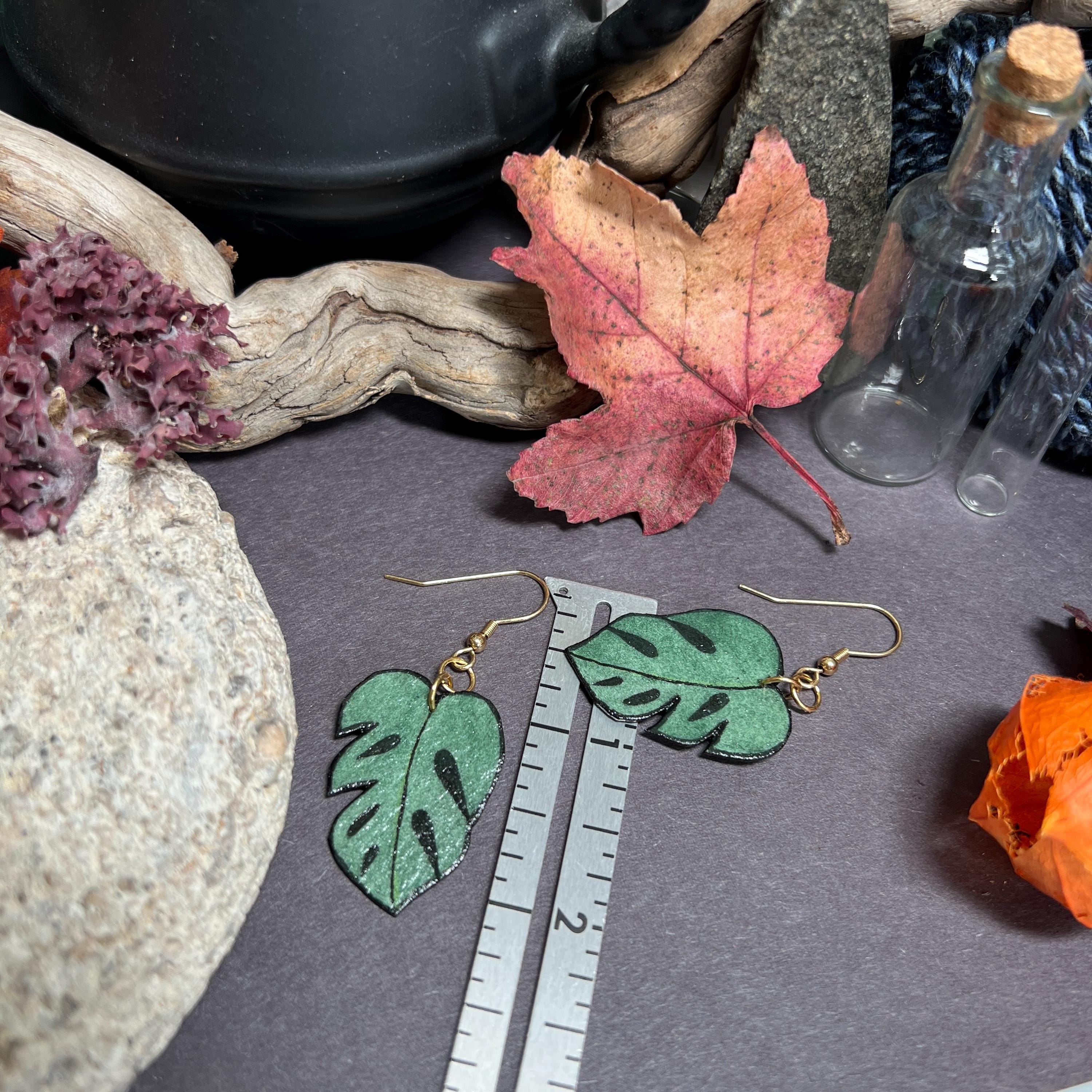 Monstera Leaf Earrings, Hand Painted, Lightweight