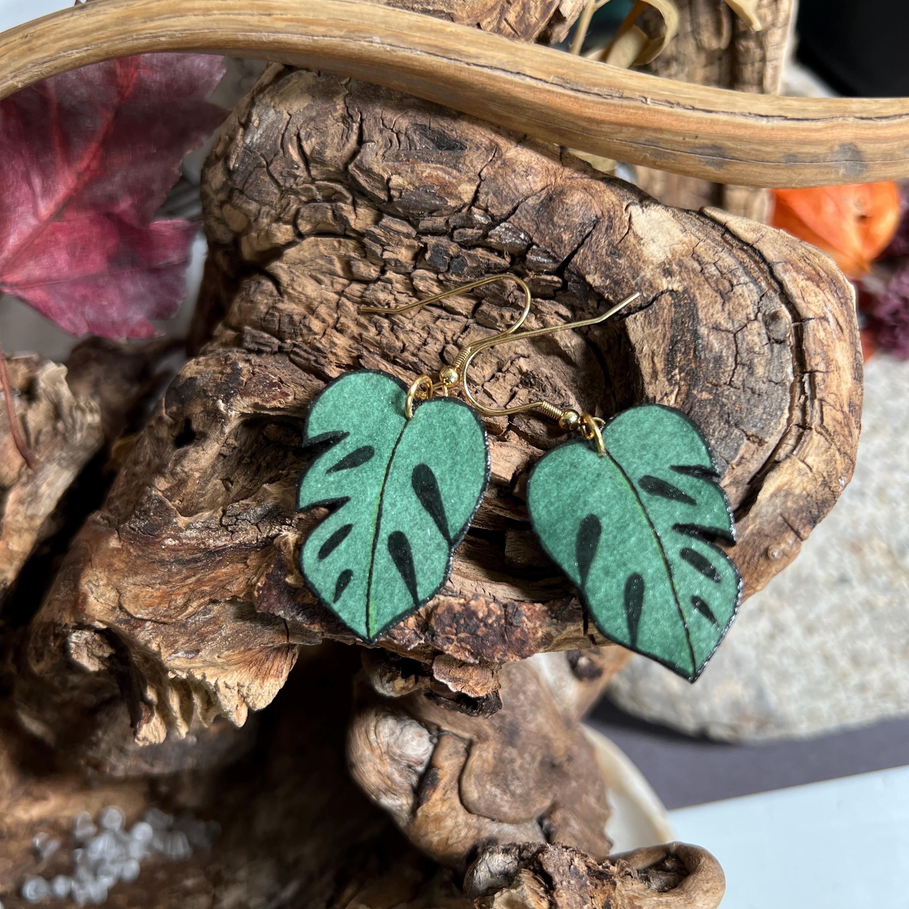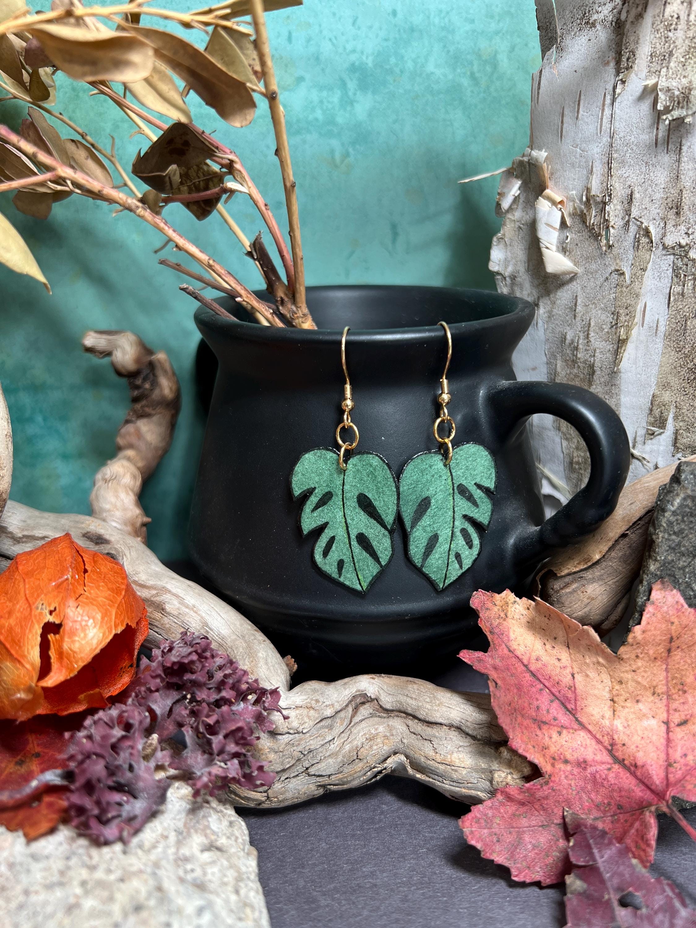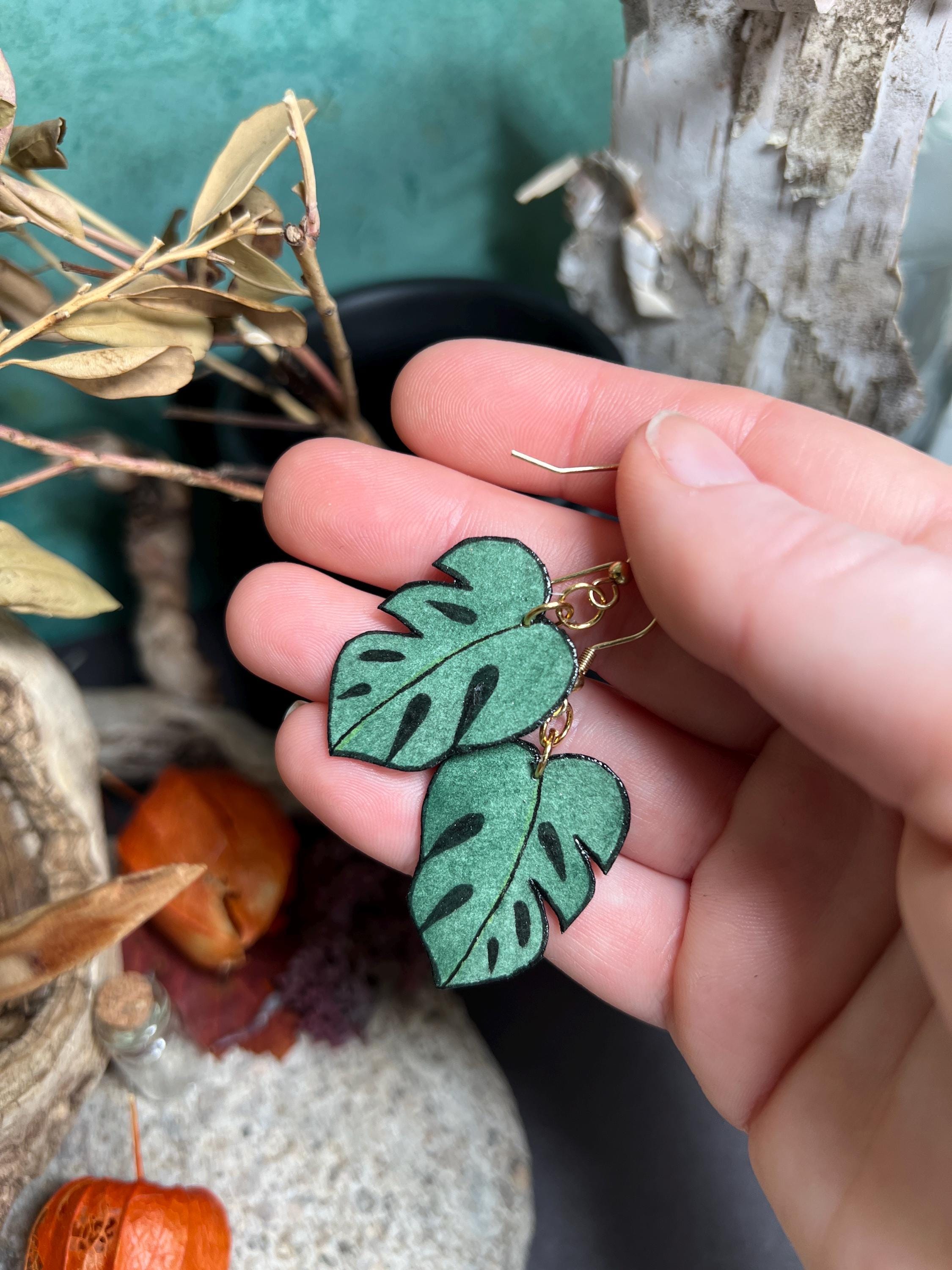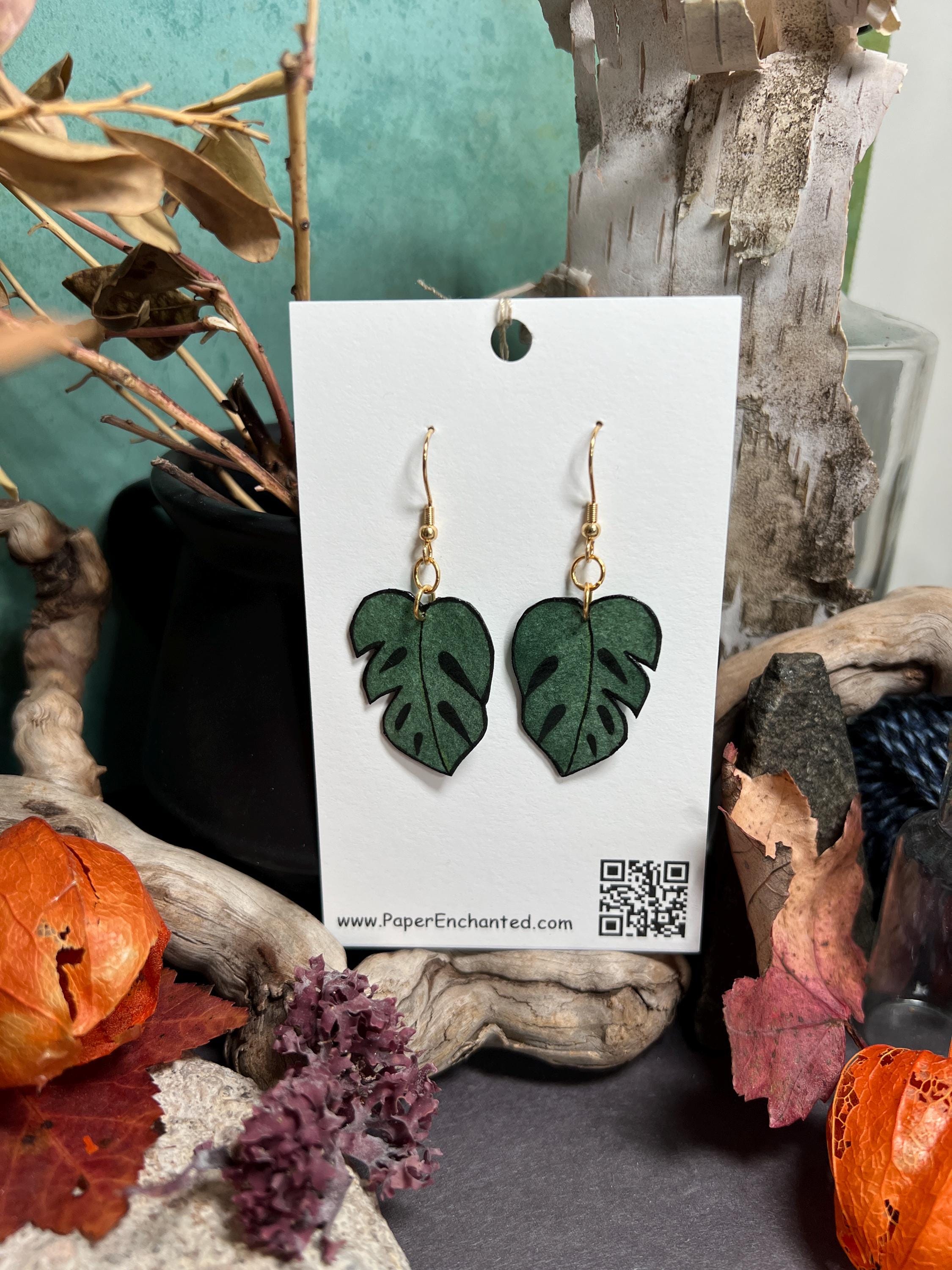 Monstera Leaf Earrings, Hand Painted, Lightweight