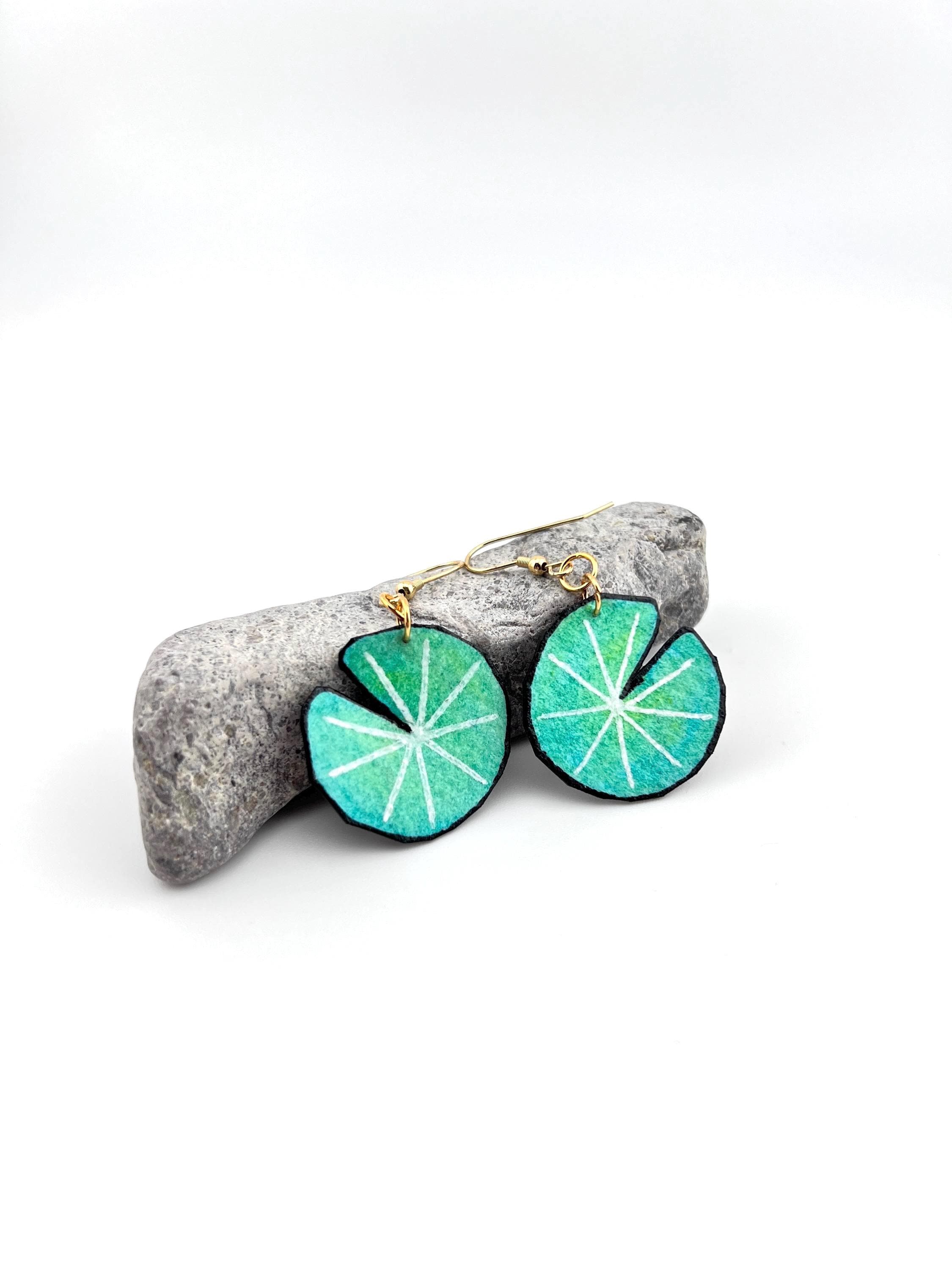 Lily Pad Earrings: Hand-Painted, Watercolor Botanical Jewelry