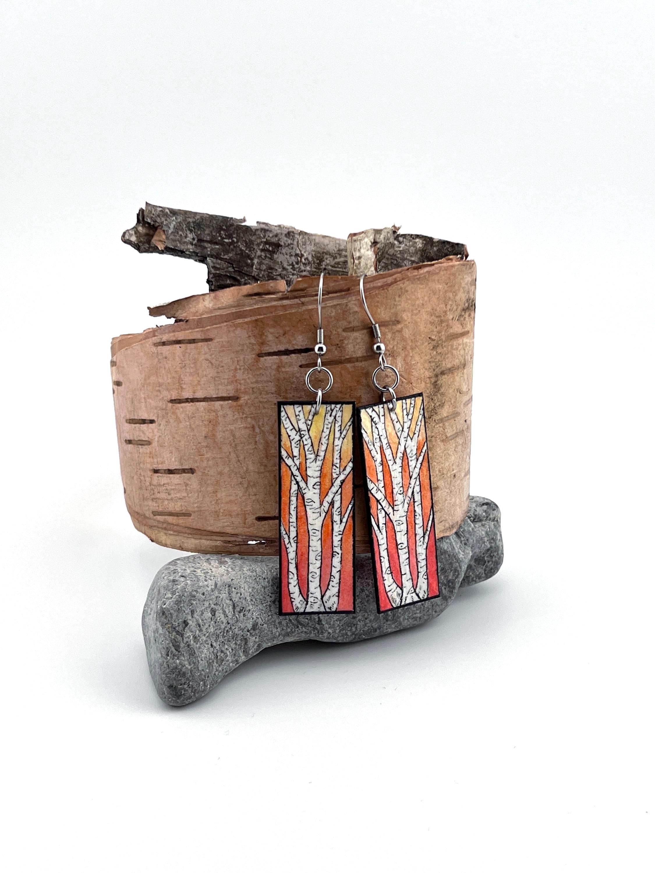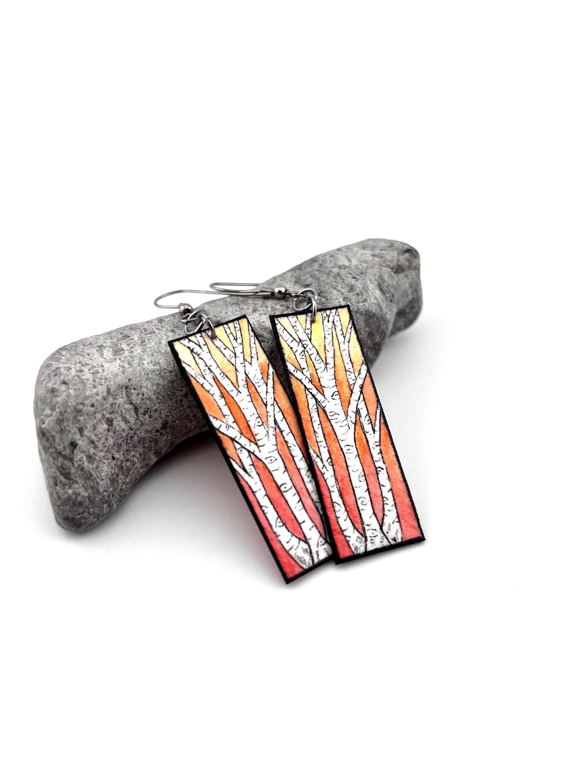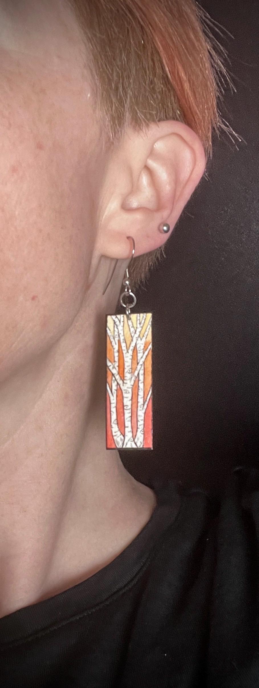 Autum Birch Tree Earrings, Wearable Fine Art Painting, Lightweight