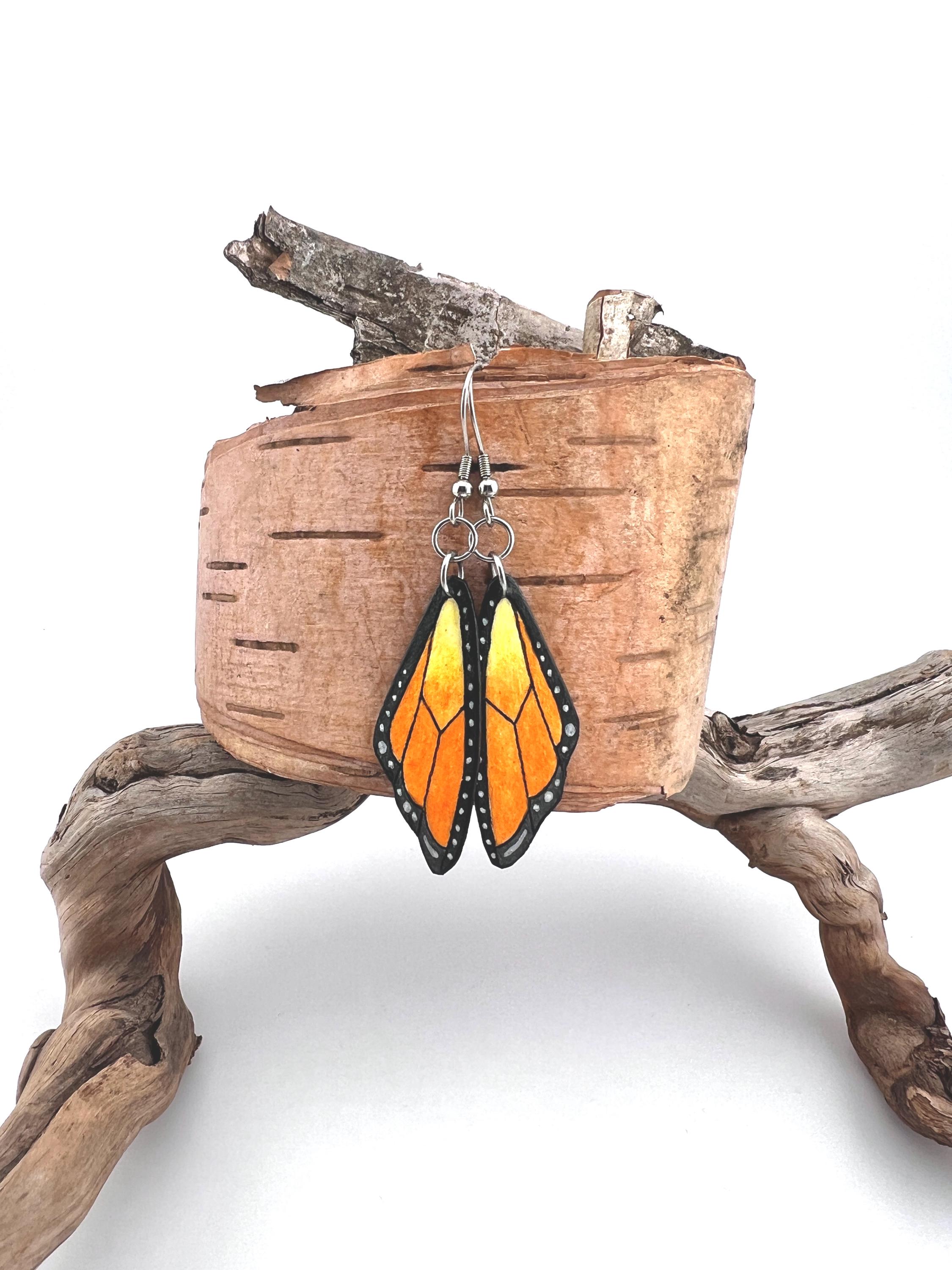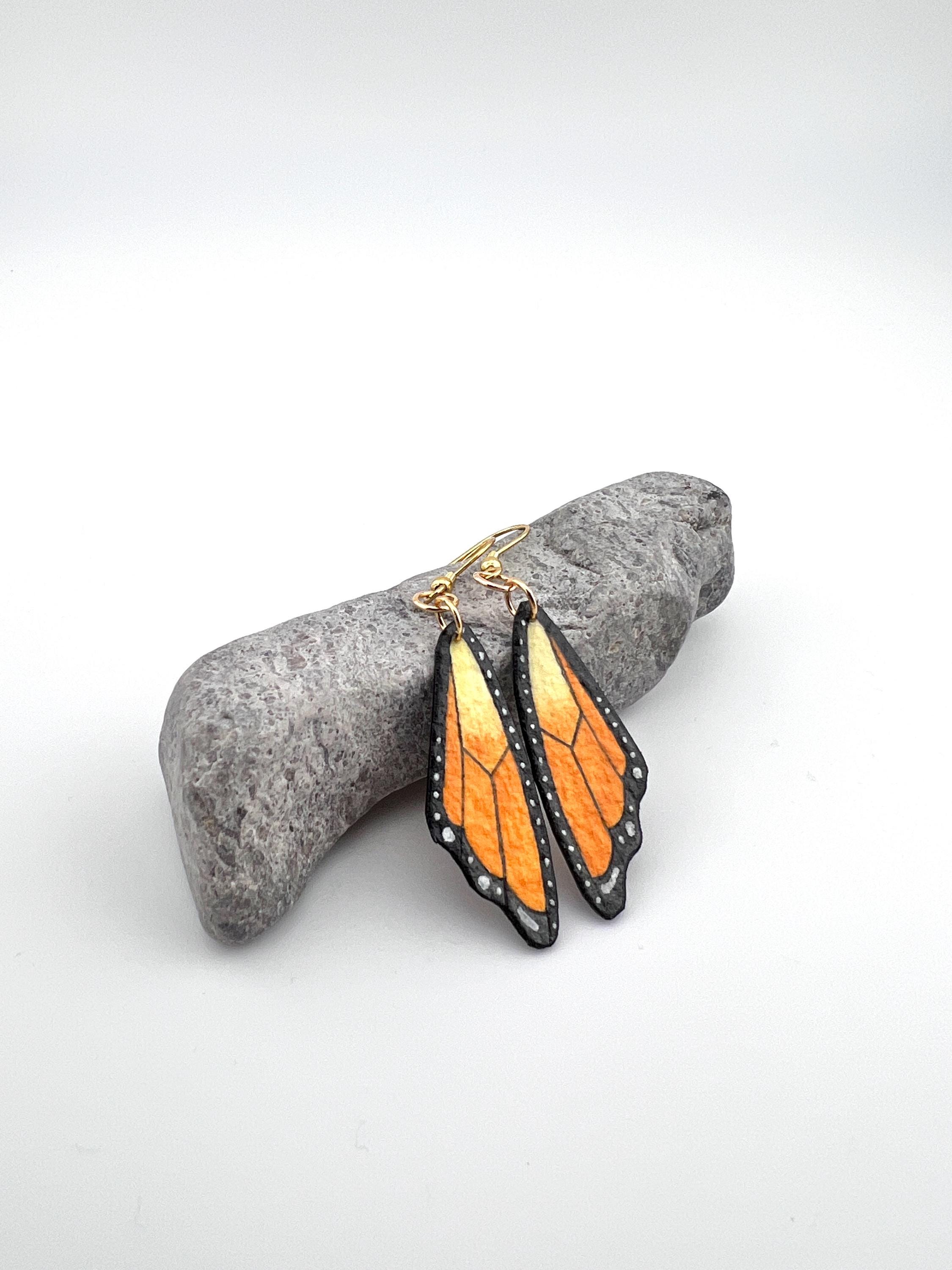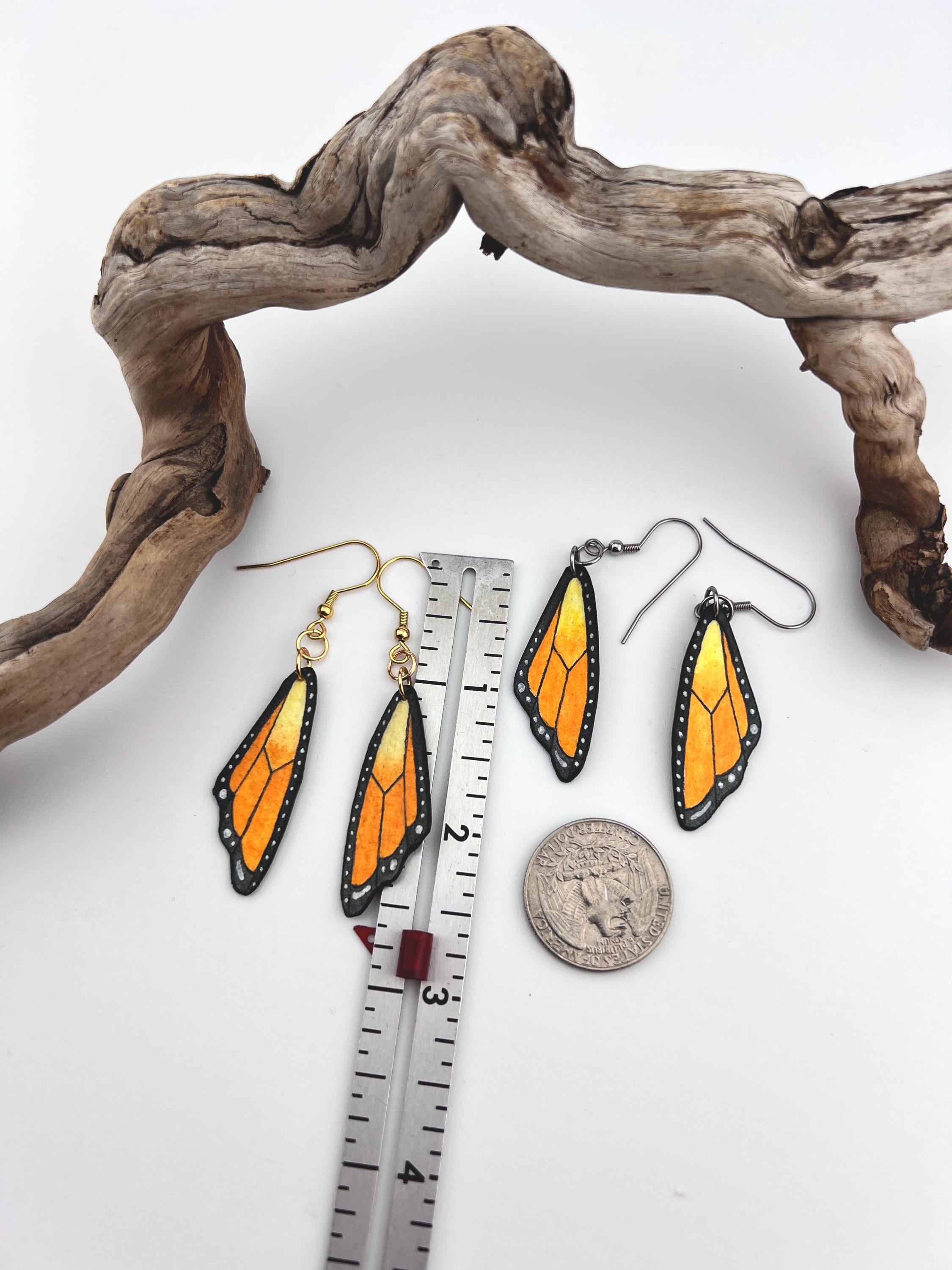 Monarch Butterfly Wing Earrings, Hand Painted, Lightweight