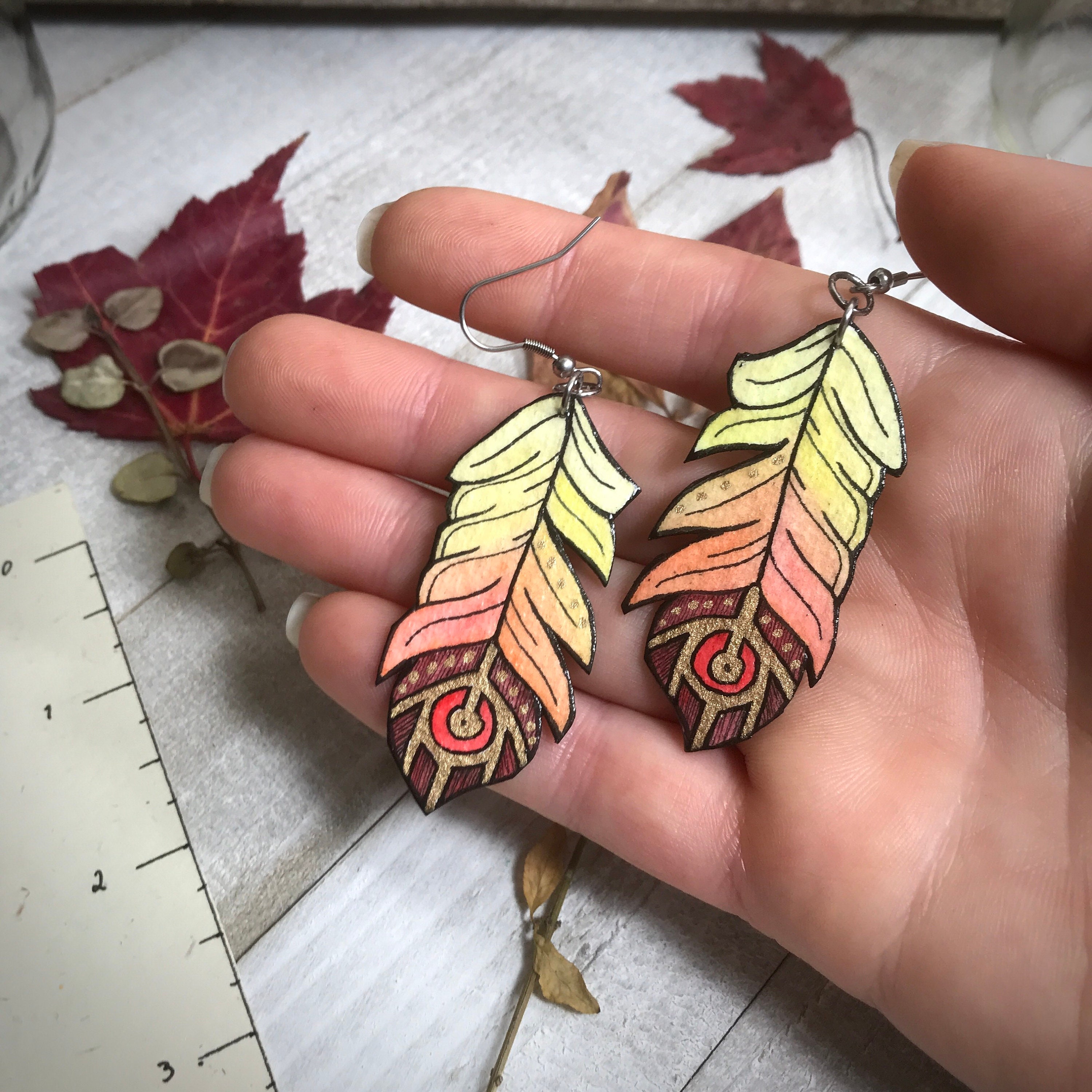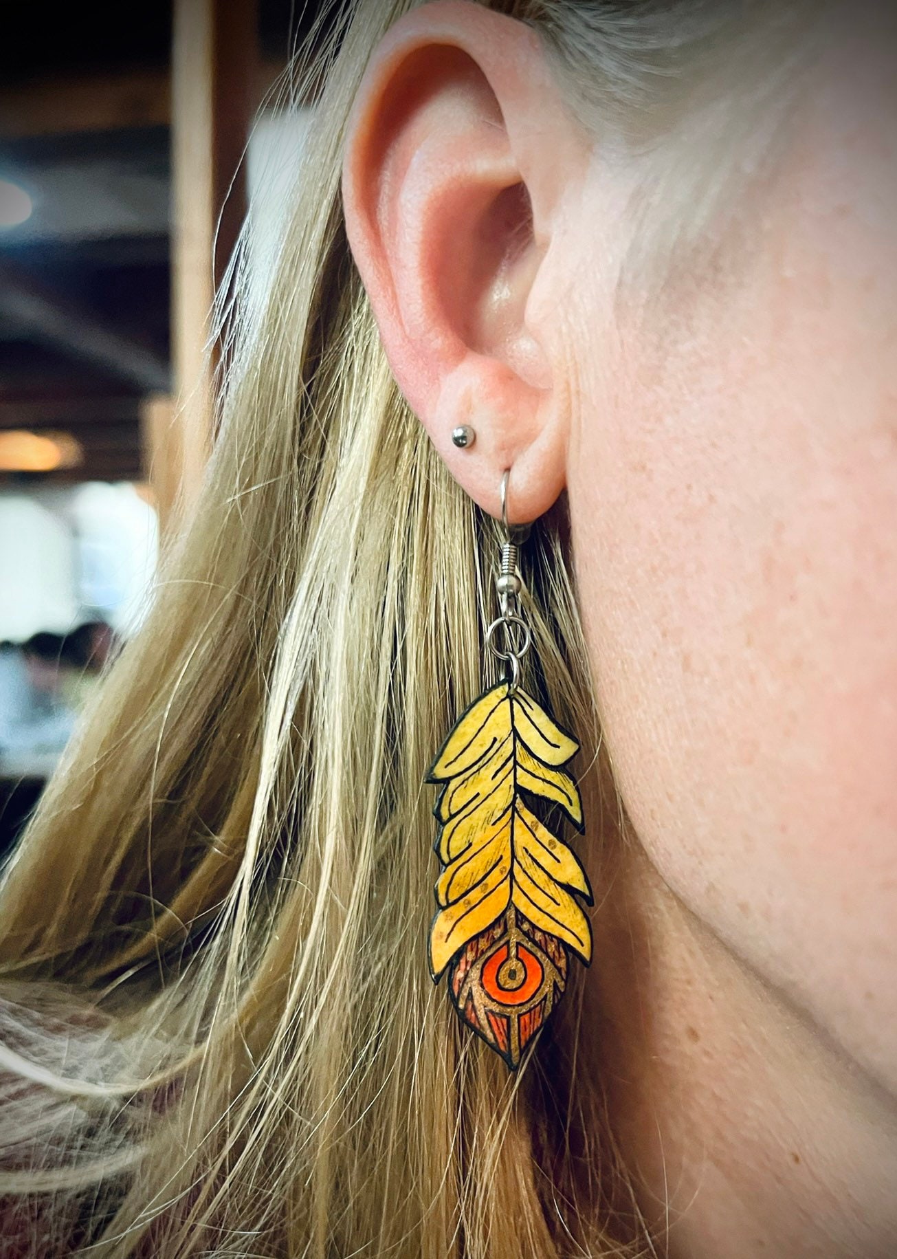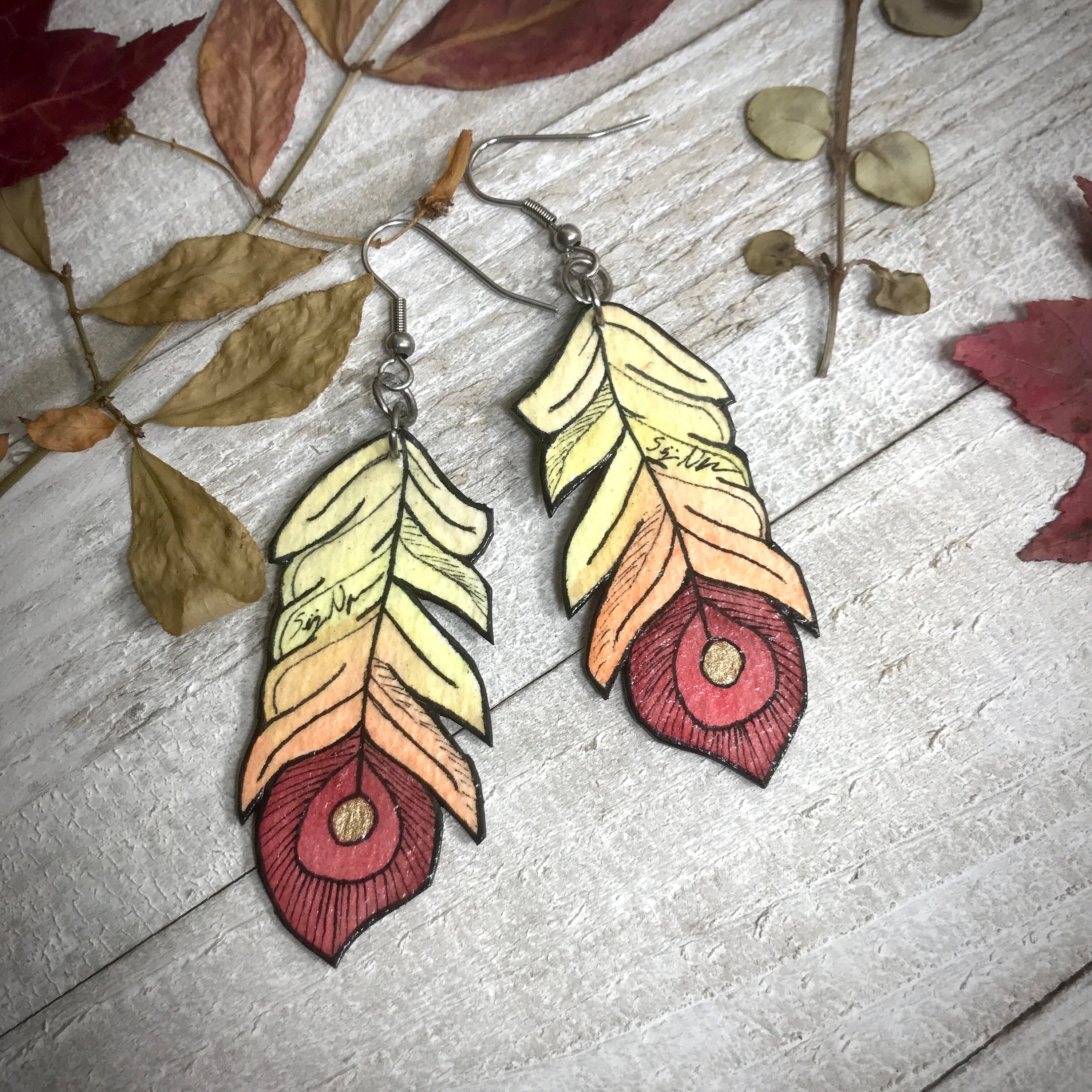 Phoenix Feather Earrings, Wearable Fine Art Painting, Lightweight