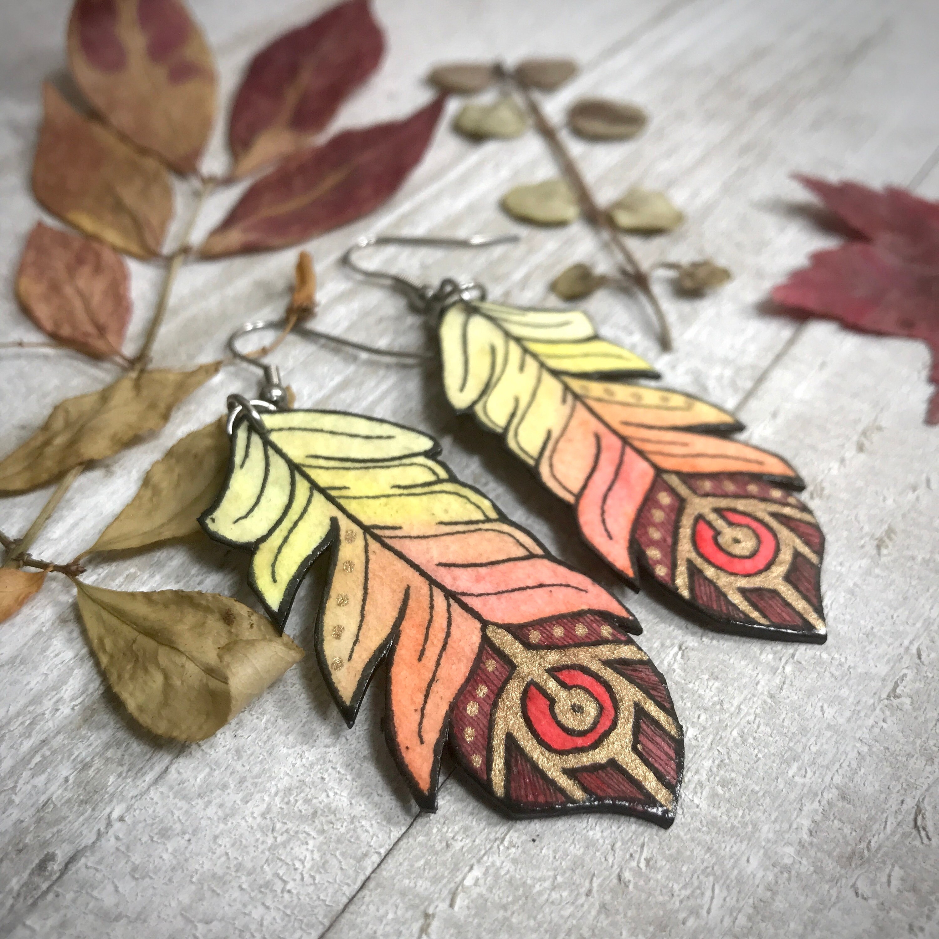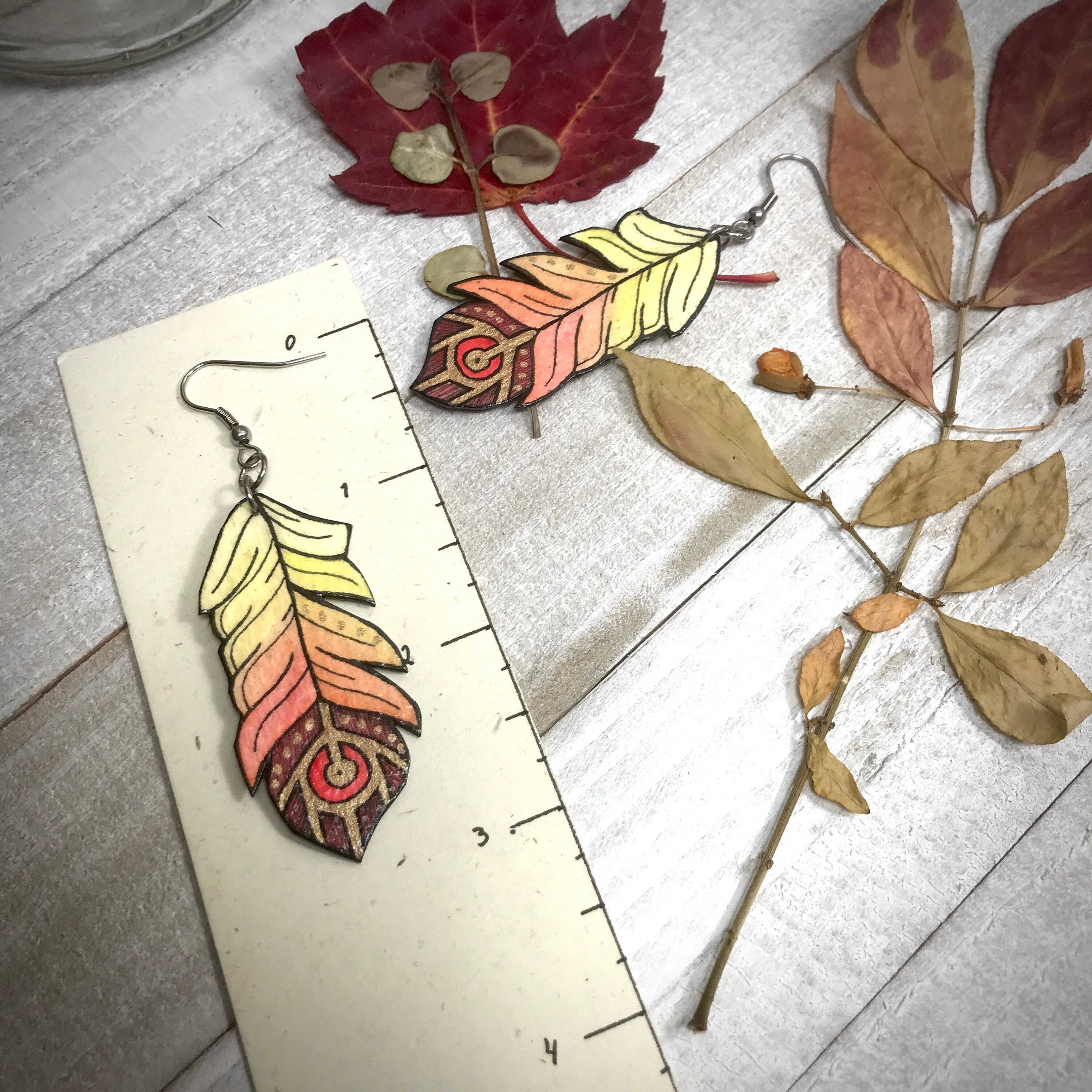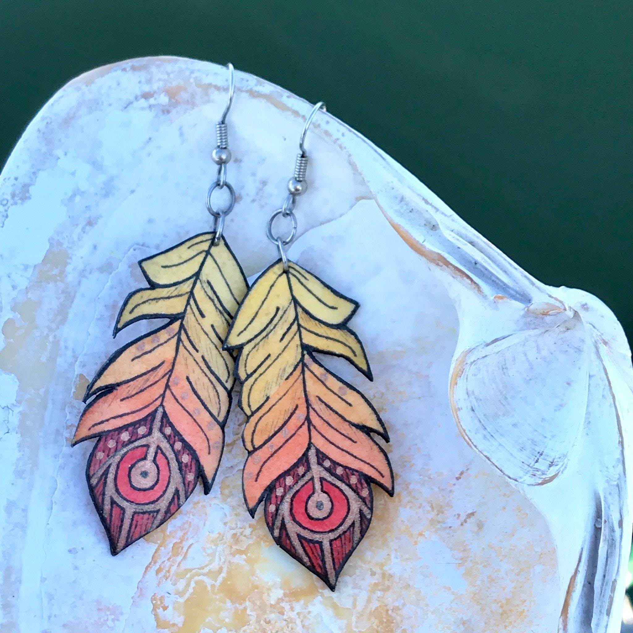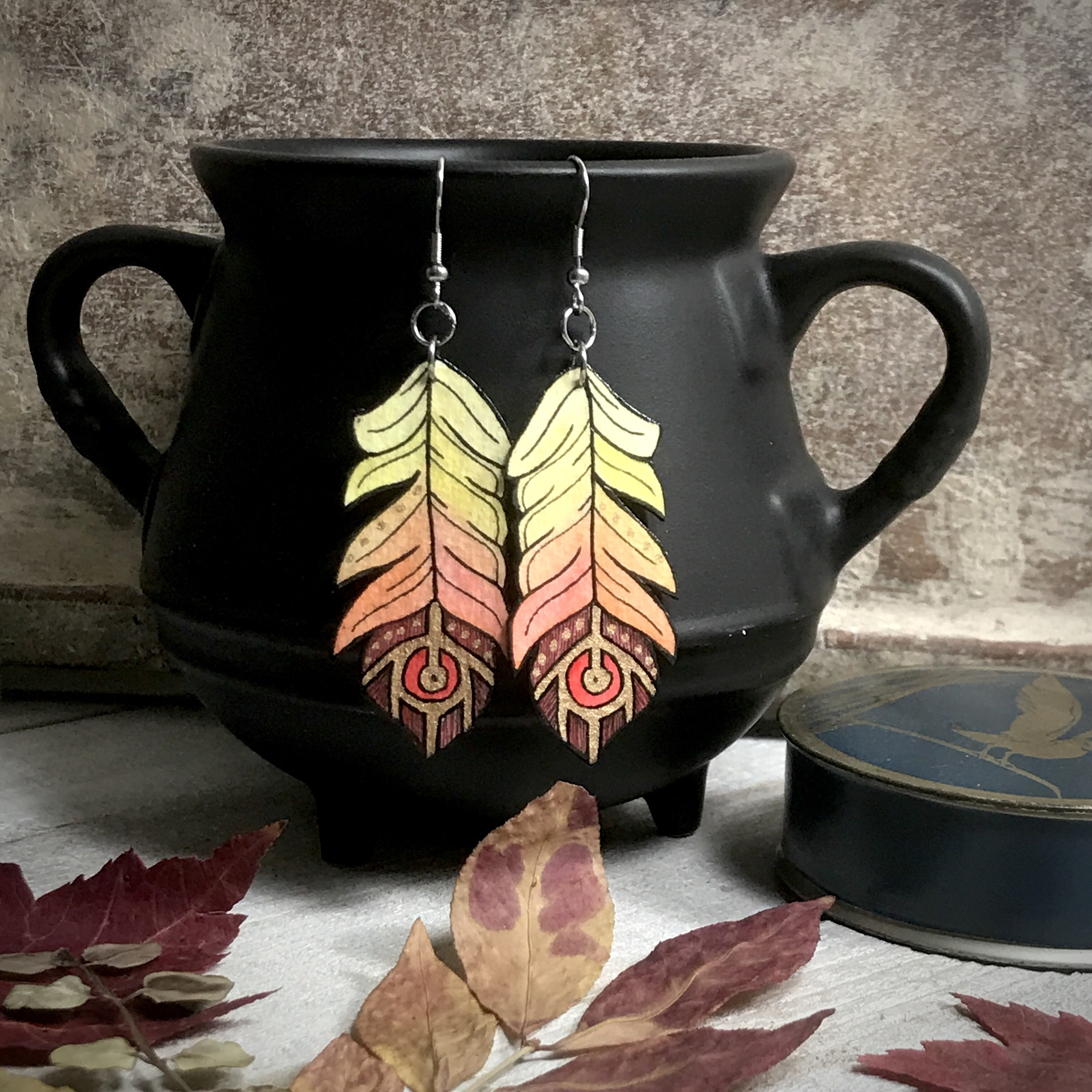 Phoenix Feather Earrings, Wearable Fine Art Painting, Lightweight