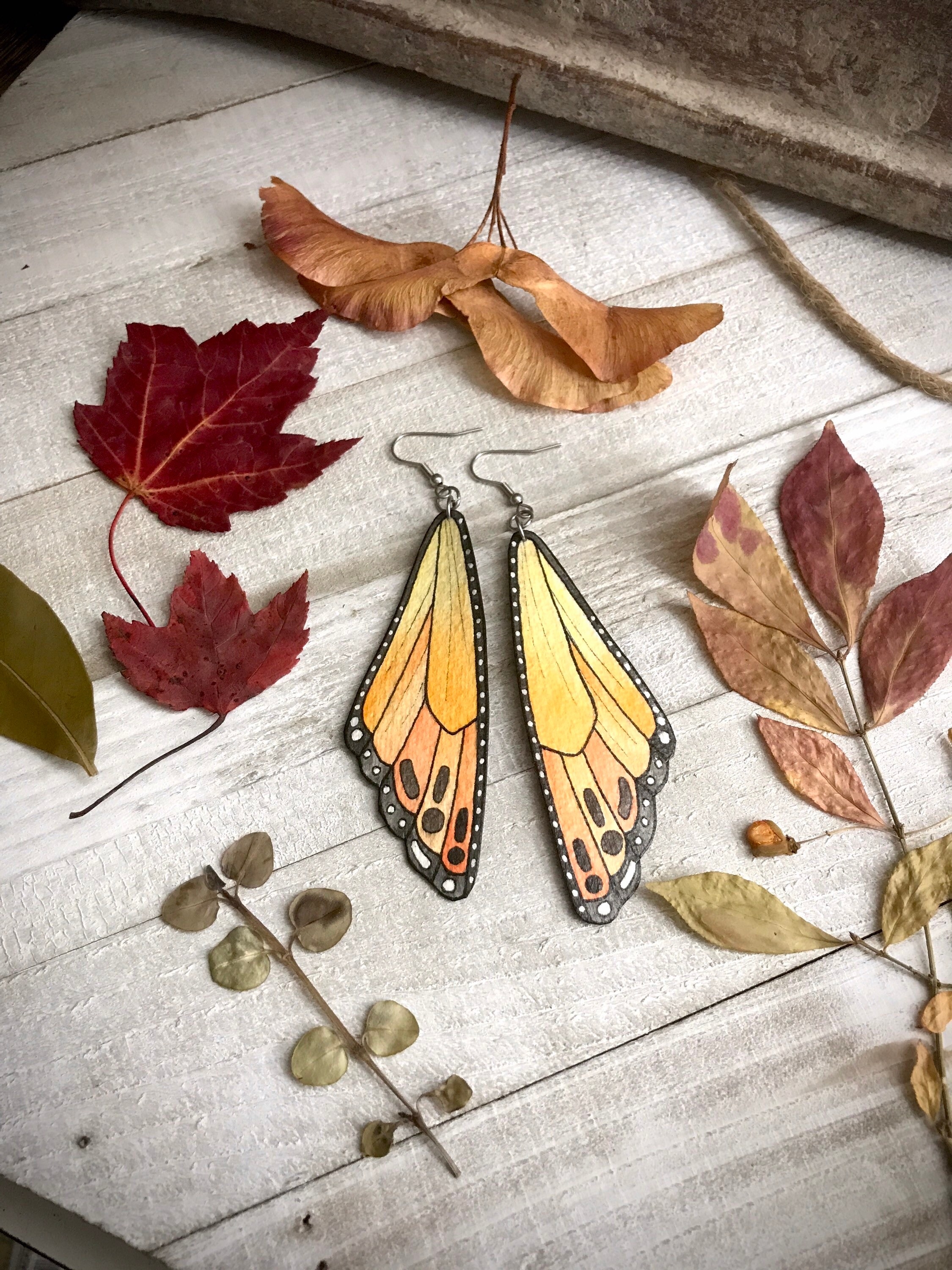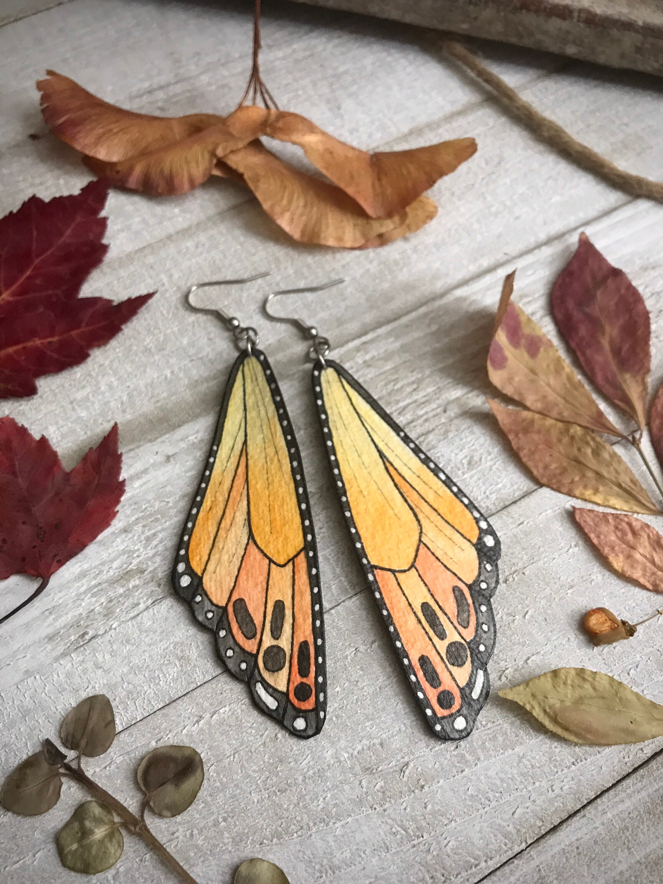 Monarch Butterfly Wing Earrings: https://www.etsy.com/listing/595365658/monarch-butterfly-wing-earrings-nature?ref=shop_home_active_1&frs=1